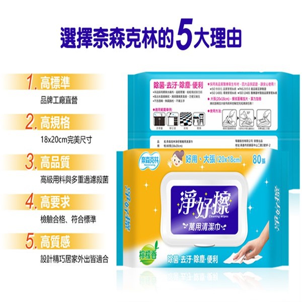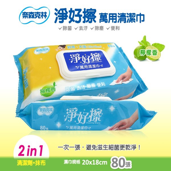 [豆豆購物]奈森克林 淨好擦萬用清潔巾加蓋80抽 加蓋 好用 80抽