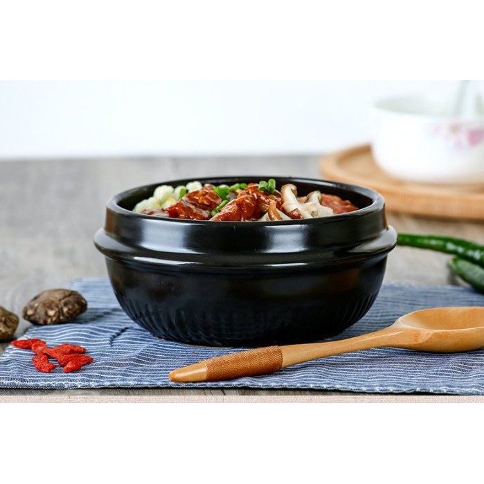 [C.M.平價精品館]預購+現貨特價/韓式石鍋拌飯專用陶瓷石鍋煲湯拌飯耐高温石鍋石鍋+底盤 2件套組