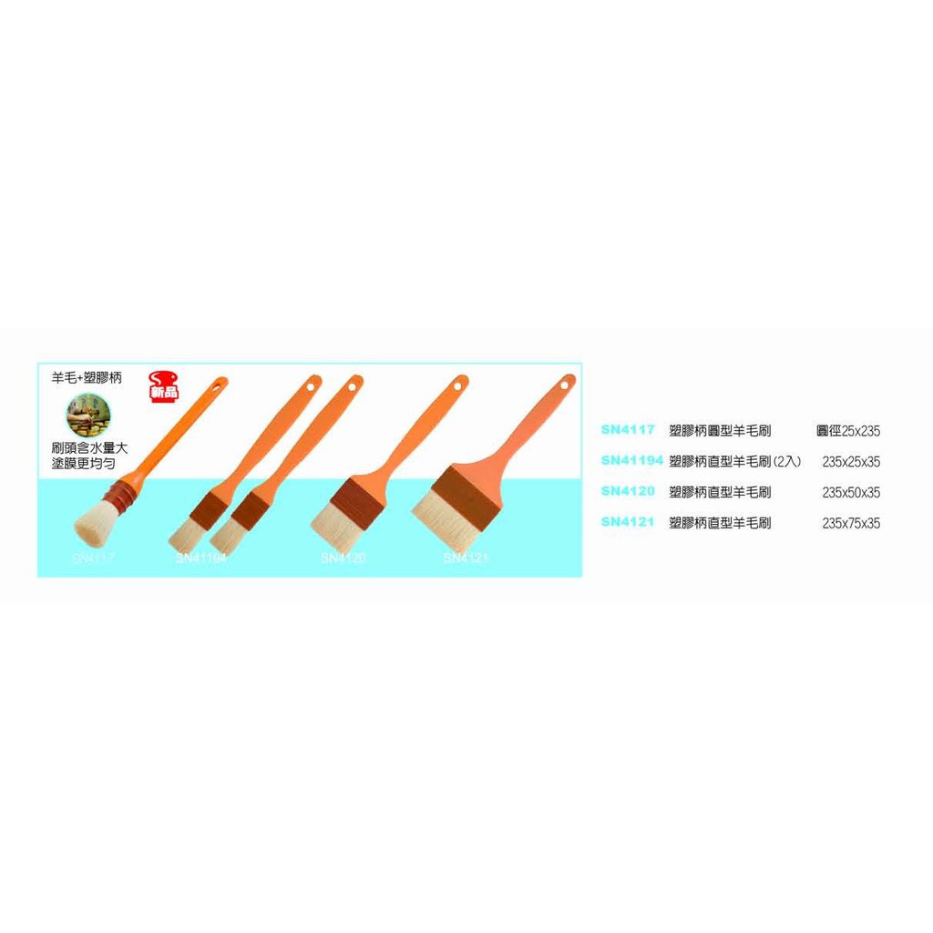 [168烘焙購][現貨]三能SN4120塑膠柄直型2"羊毛刷