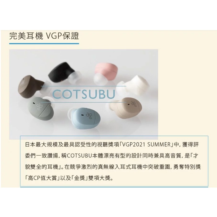 [final台灣授權經銷] 日本 ag COTSUBU MK2 真無線藍牙耳機 IPX4防水等級