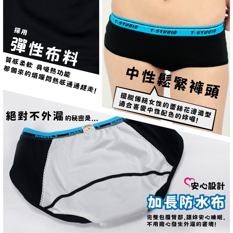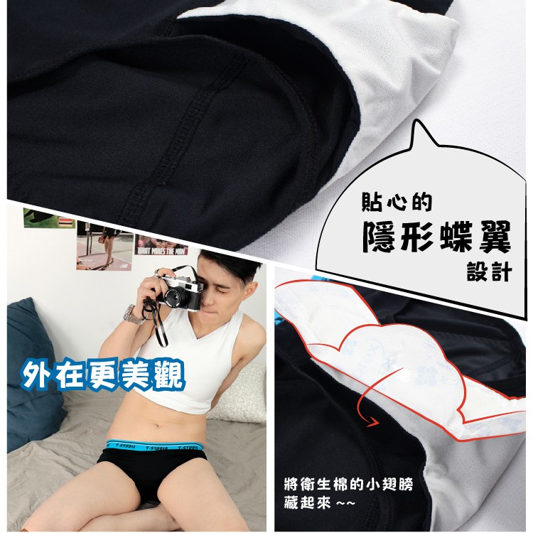 【T-STUDIO】夜用生理褲系列/蝶翼生理三角褲-黑色