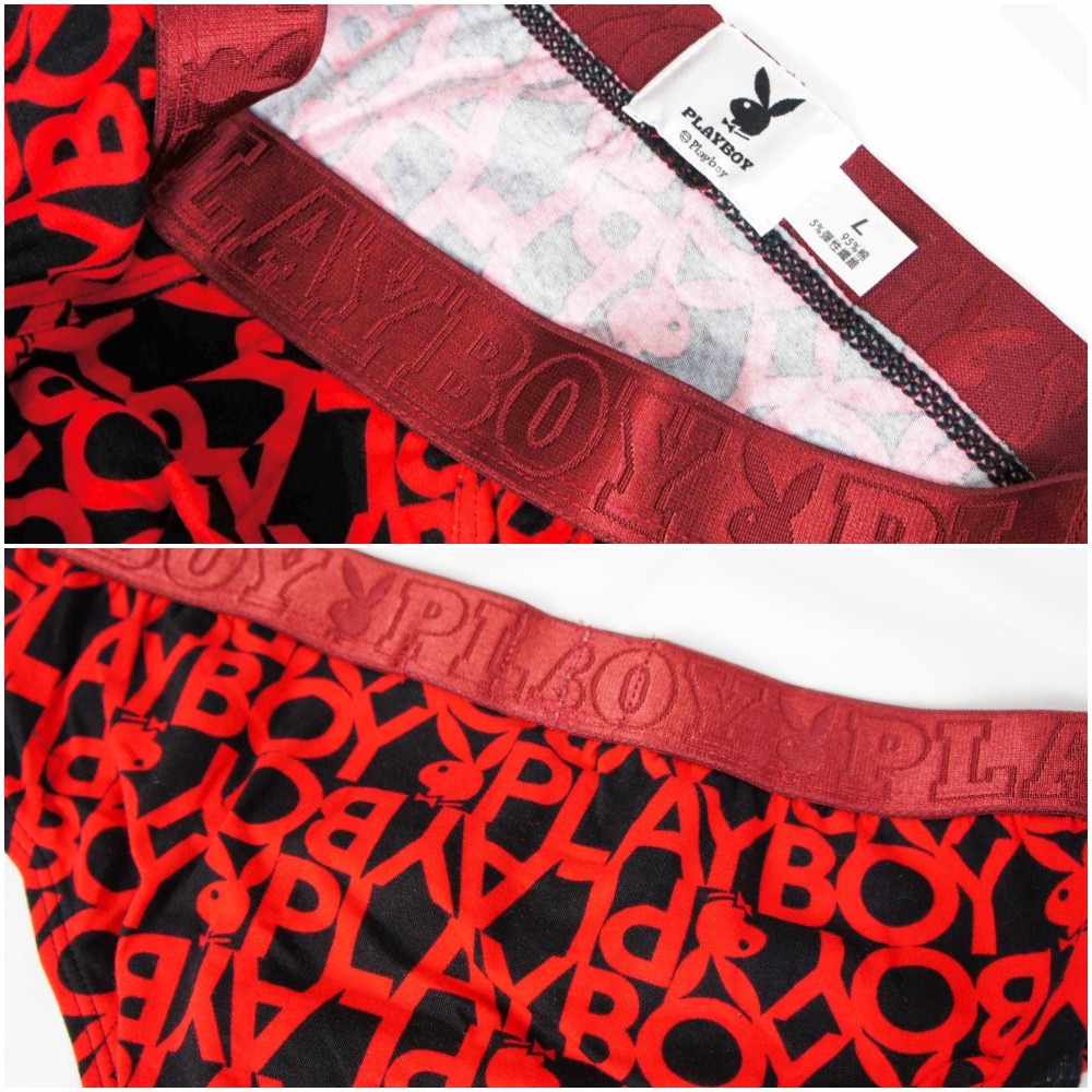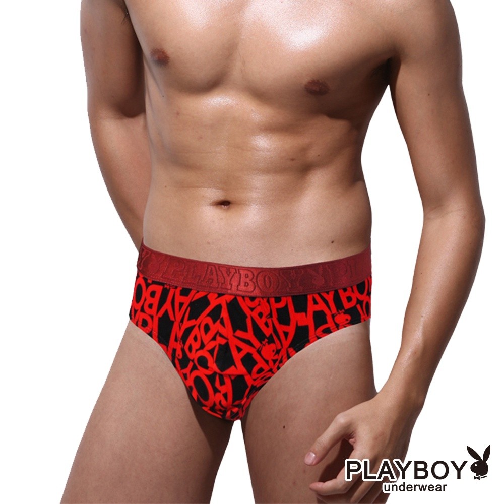 PLAYBOY|經典大LOGO三角內褲|紅密字兔