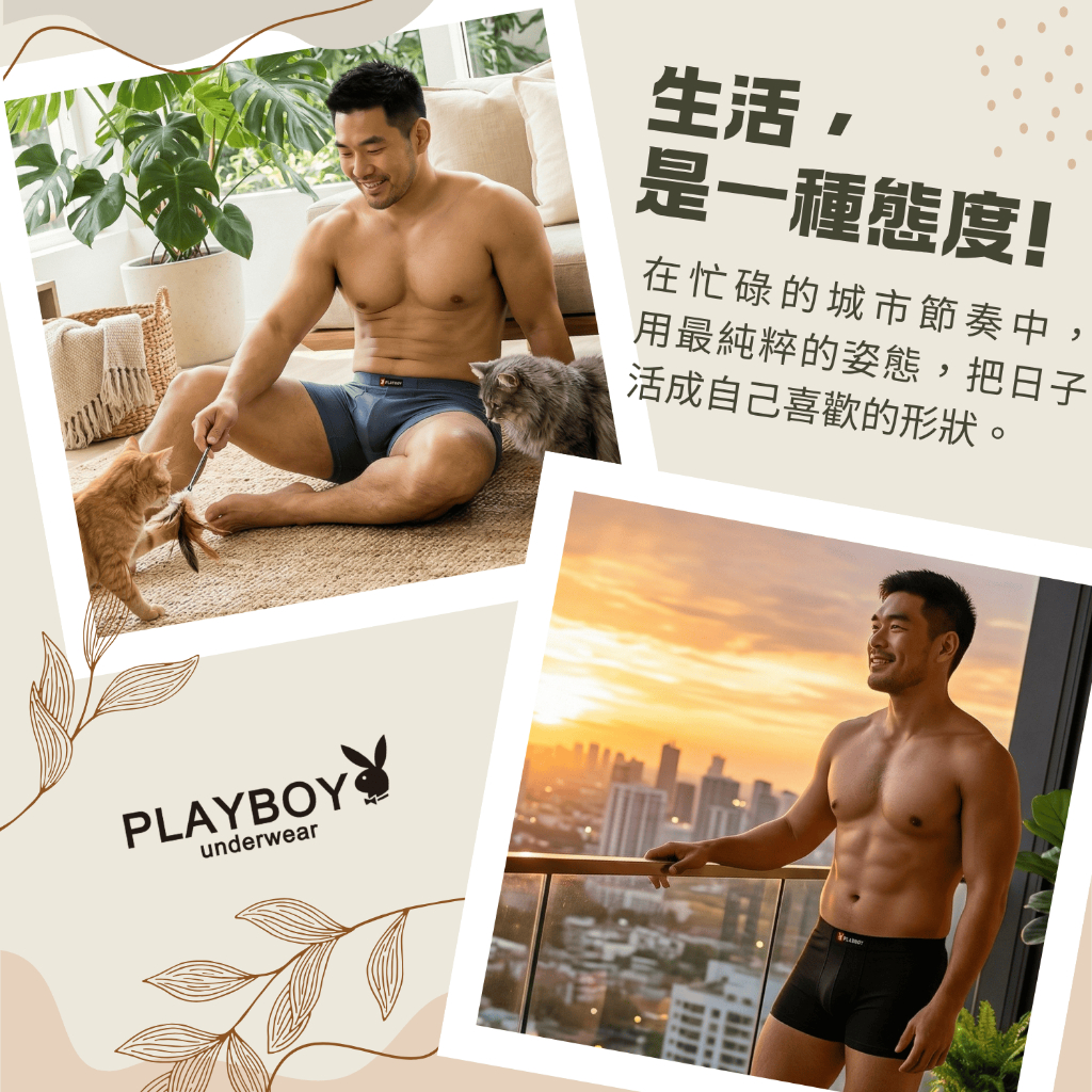 PLAYBOY|三片式立體剪裁平口內褲 四角內褲|黑色