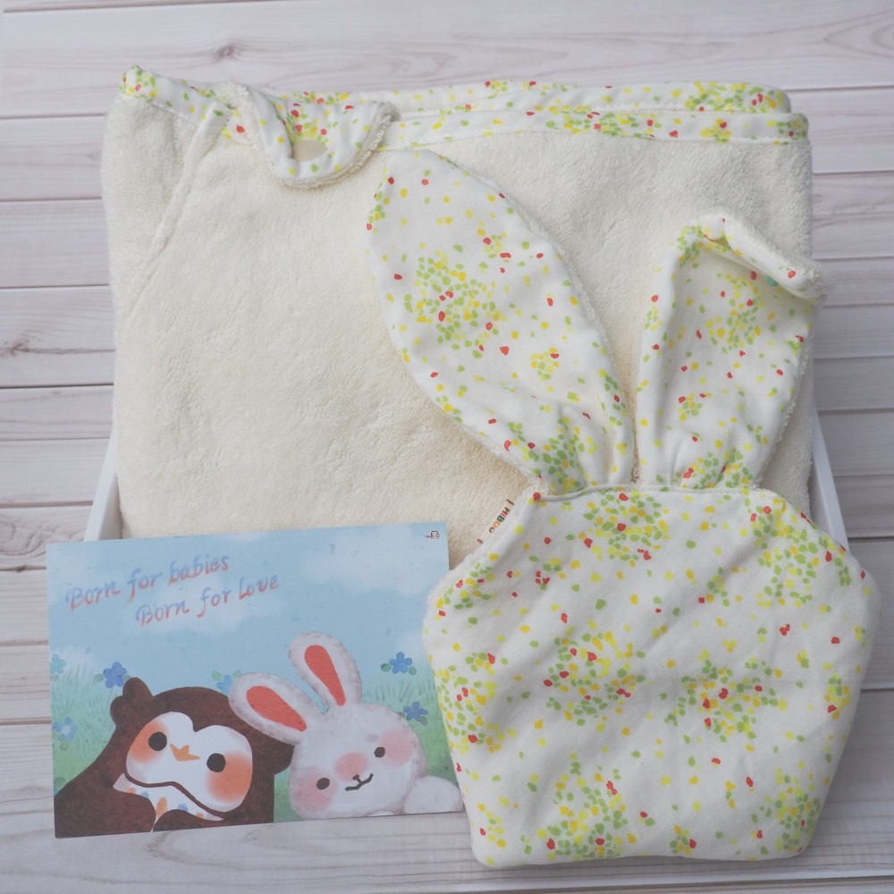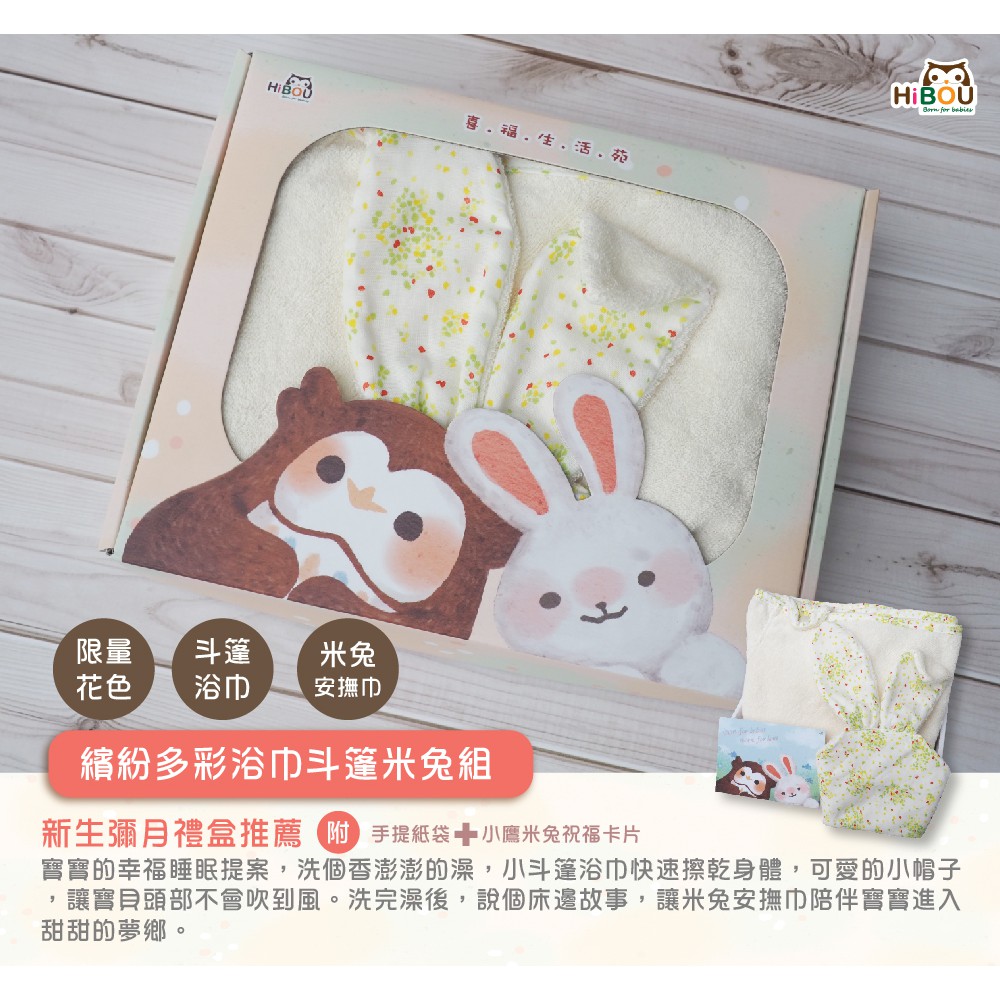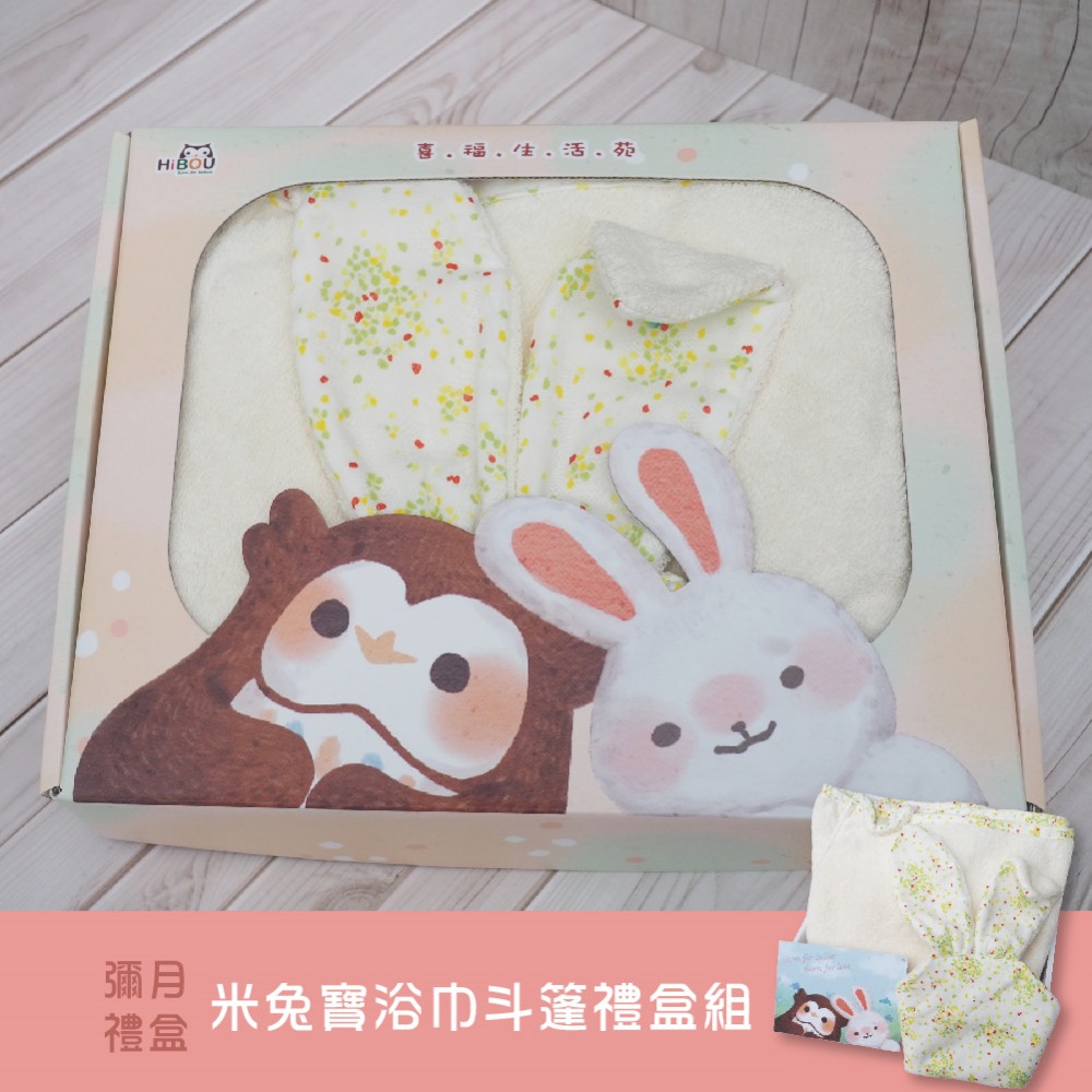 台灣製現貨(男/女寶配色)有機棉斗篷浴巾新生兒禮盒│米兔安撫巾|嬰兒斗篷浴巾連帽浴巾 (新生彌月禮盒洗澡神器哄睡神器彌月