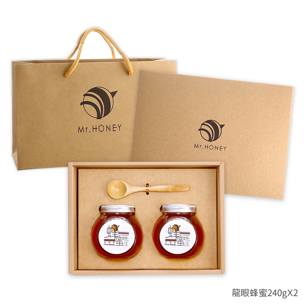 【蜂蜜先生Mr.HONEY】蜜漬禮盒(240gX2)-蜂蜜漬檸檬+台灣龍眼蜂蜜/紅柴蜂蜜 附禮袋|新年送禮不踩雷