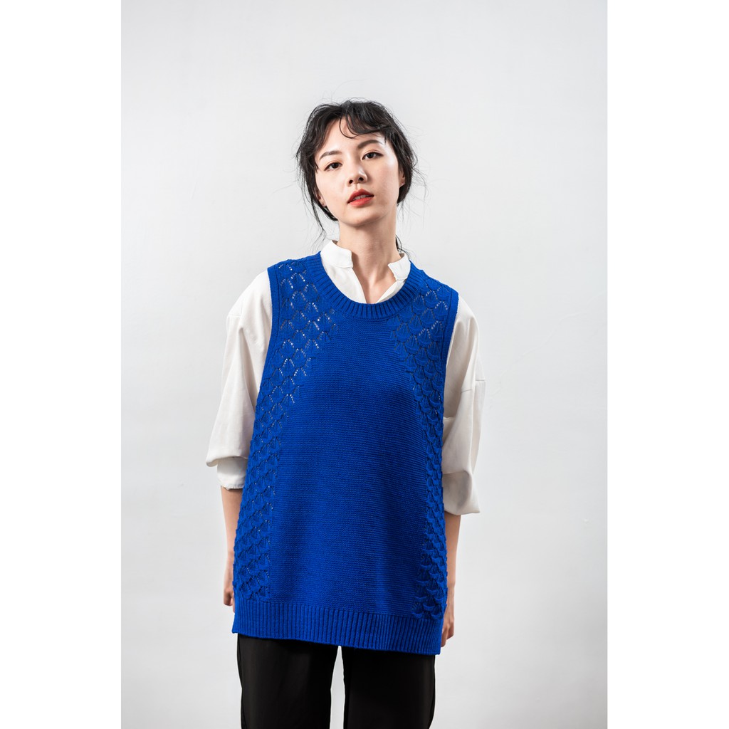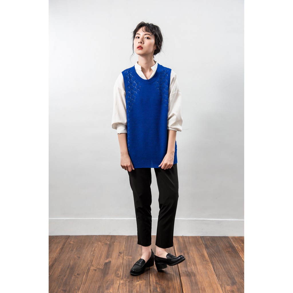 O-LIWAY 台灣製MIT 圓領側邊蕾絲勾花針織背心-寶藍色