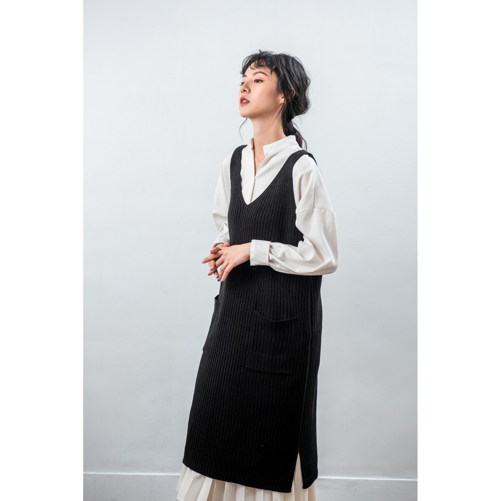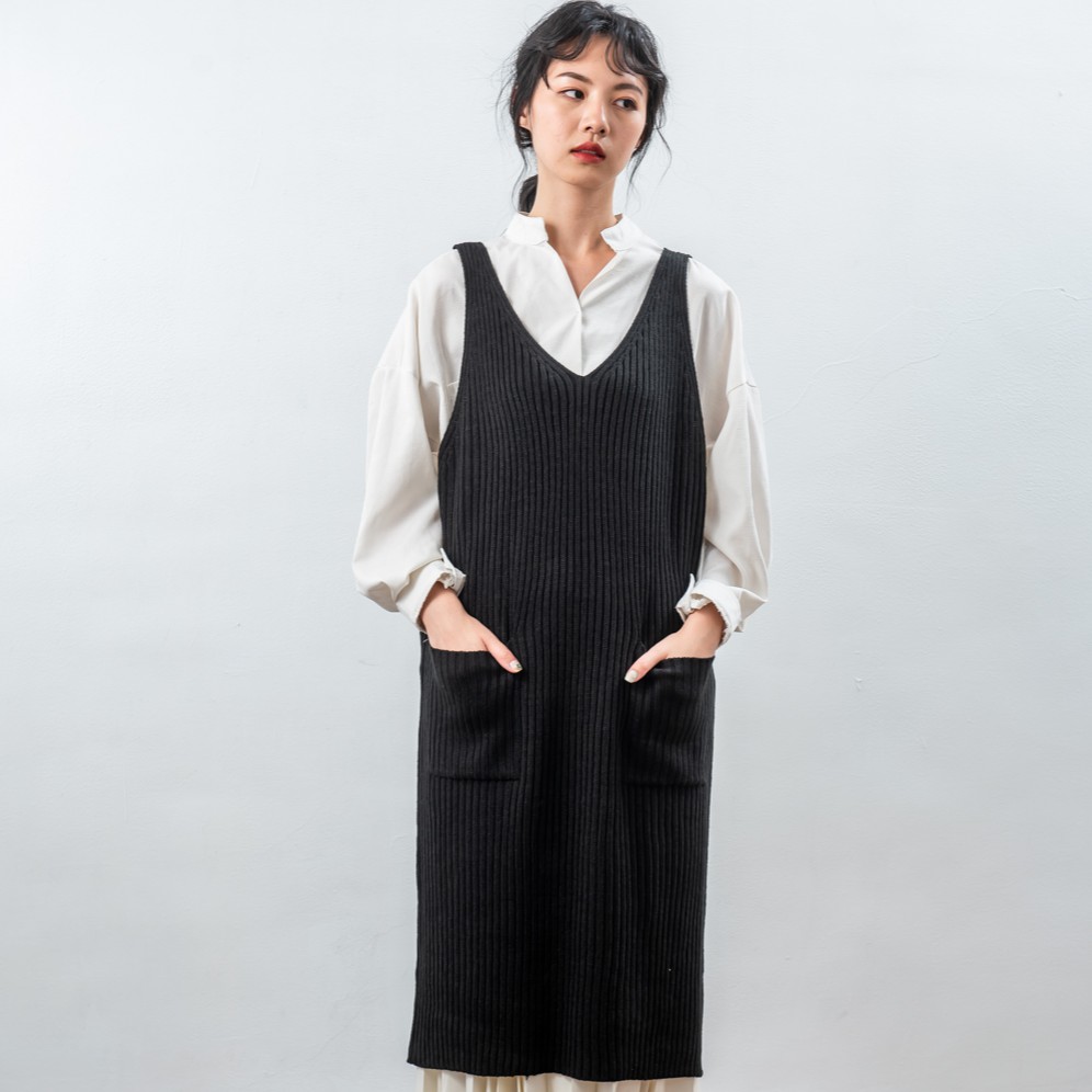 O-LIWAY 台灣製MIT 雙口袋V領羅紋針織洋裝背心 oliway