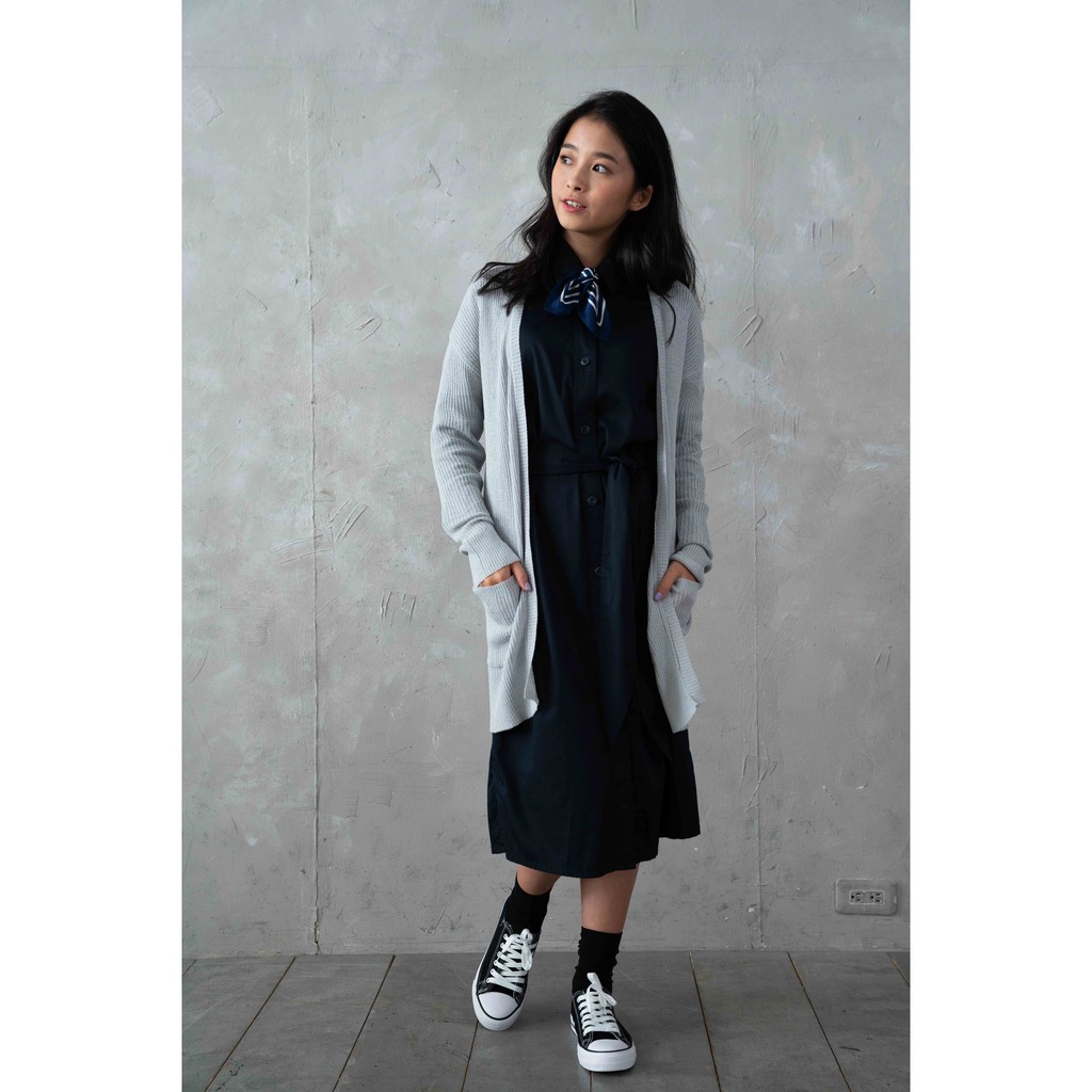 O-LIWAY 台灣製MIT 細針V領羅紋長版針織外套