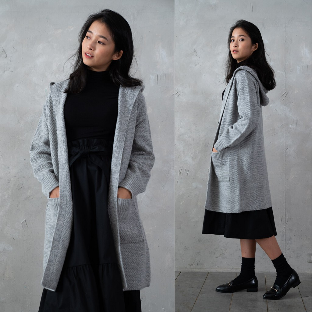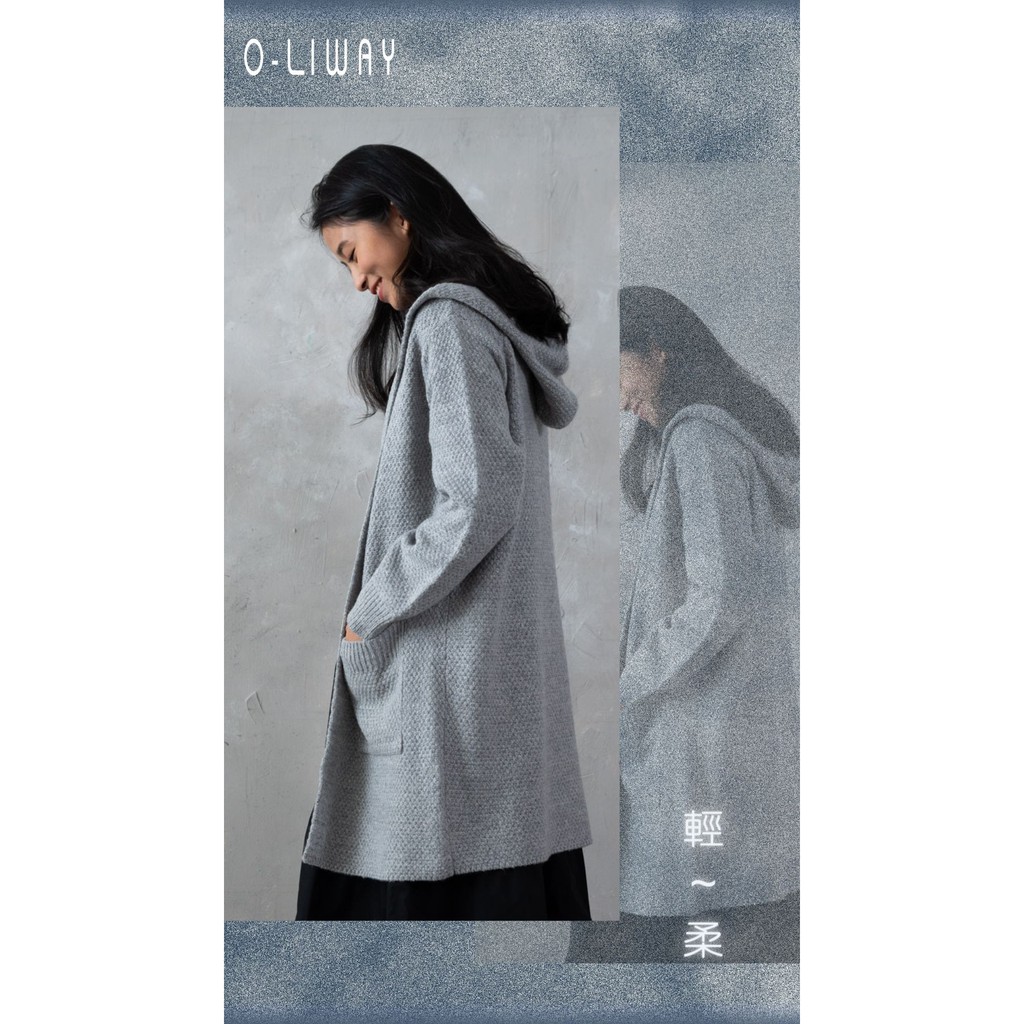 O-LIWAY 台灣製MIT 連帽長版刷毛針織外套