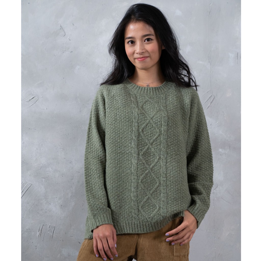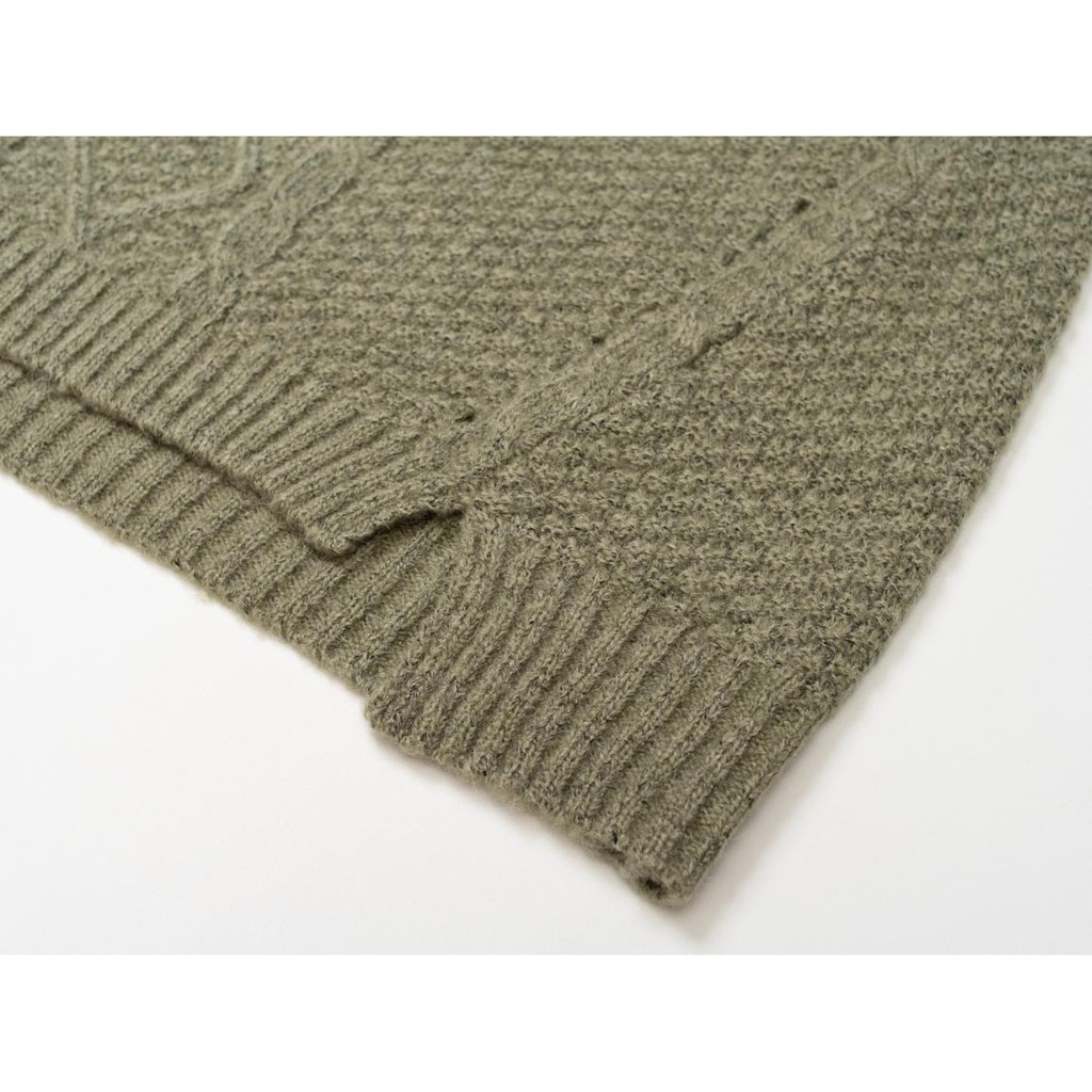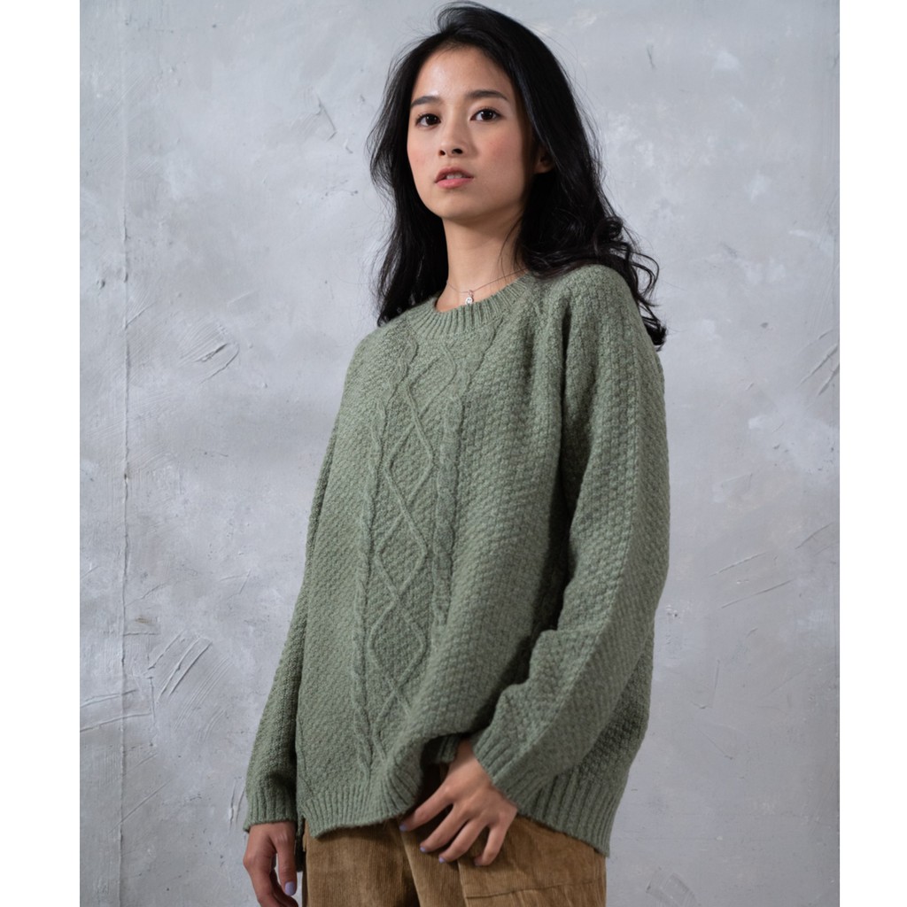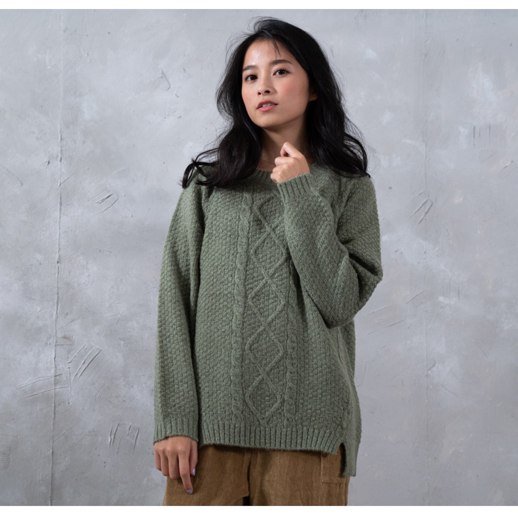 O-LIWAY 台灣製 MIT 輕刷毛圓領菱形格麻花寬版針織毛衣