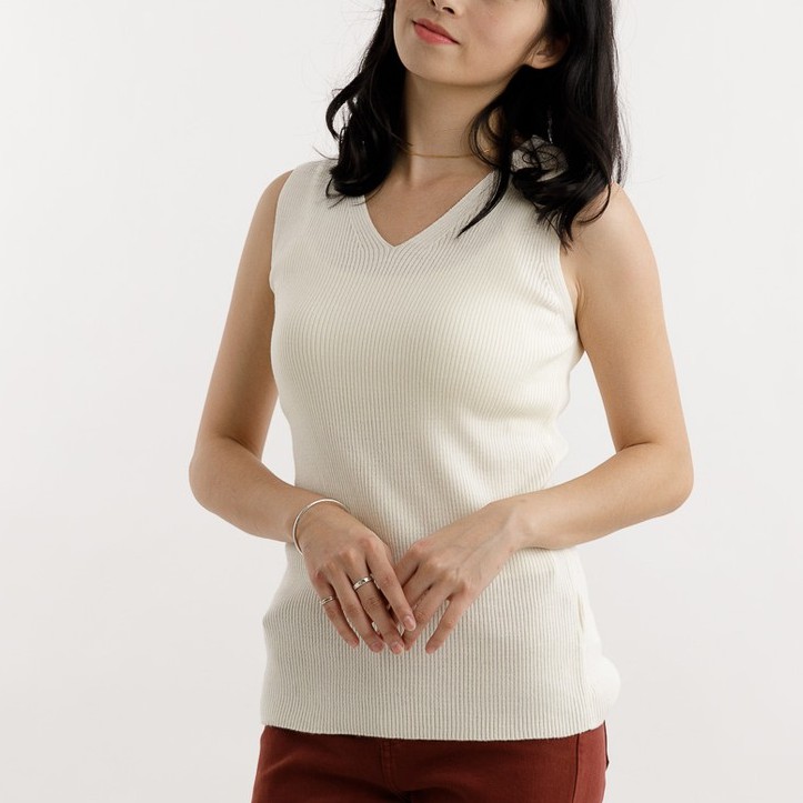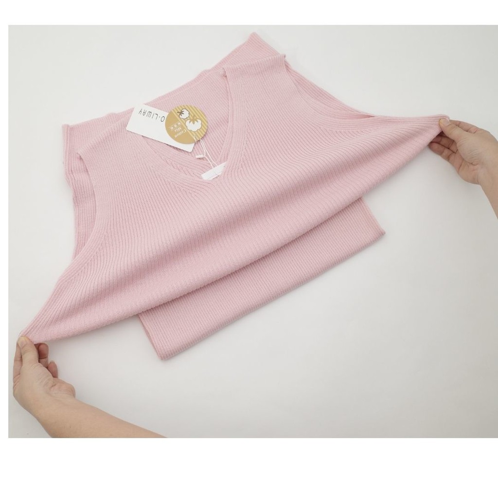 O-LIWAY 台灣製MIT 細針混棉V領坑條針織背心