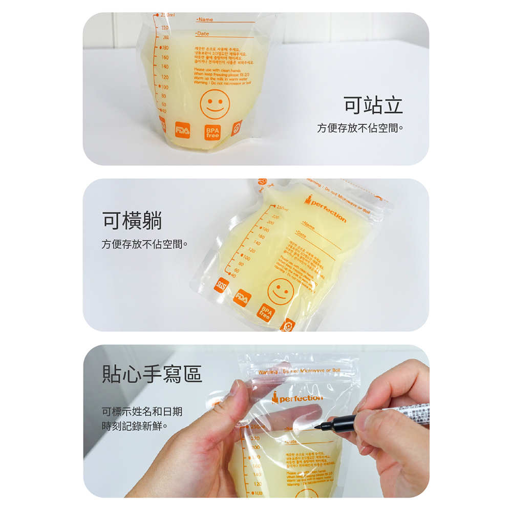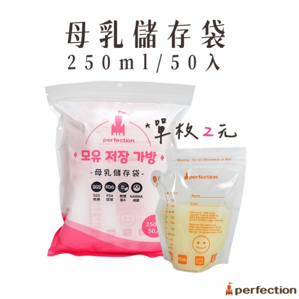 【perfection】母乳儲存袋 大容量250ml一包50入 下單(250入) 贈小熊洗頭杯