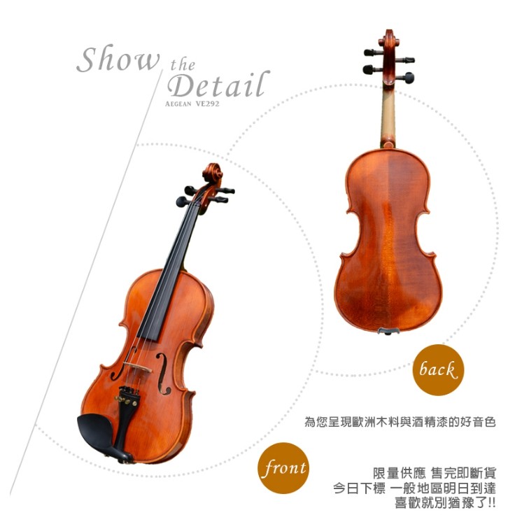 【嘟嘟牛奶糖】VE292 酒精漆小提琴 歐洲木料 全烏木配件 超完美音色 等您來體驗
