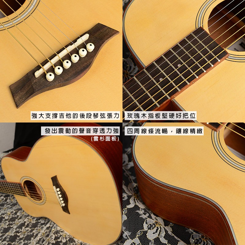 【嘟嘟牛奶糖樂器】台灣現貨 面單 36吋雲杉面桃花芯民謠 木吉他 旅行吉他 G5