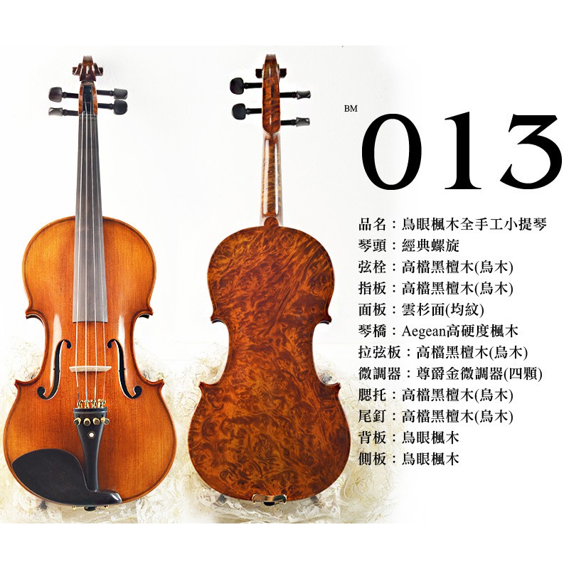 【嘟嘟牛奶糖】台灣現貨.Birdseye.高檔鳥眼楓木手工小提琴.13號琴.精緻嚴選.獨一無二.限量款.高檔小提琴