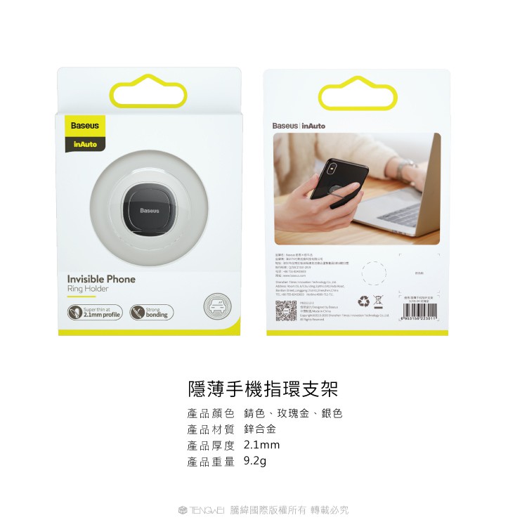 【Baseus倍思】隱薄指環支架 手機支架 手機支撐 鋅合金手機背貼支架 手機支架