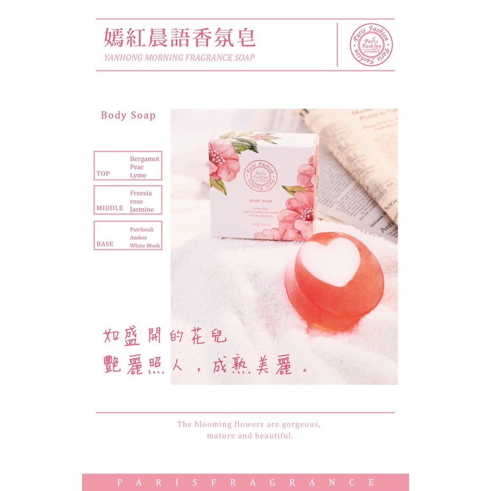 【巴黎香氛】花漾戀香 - 嫣紅晨語香氛皂 100g soap