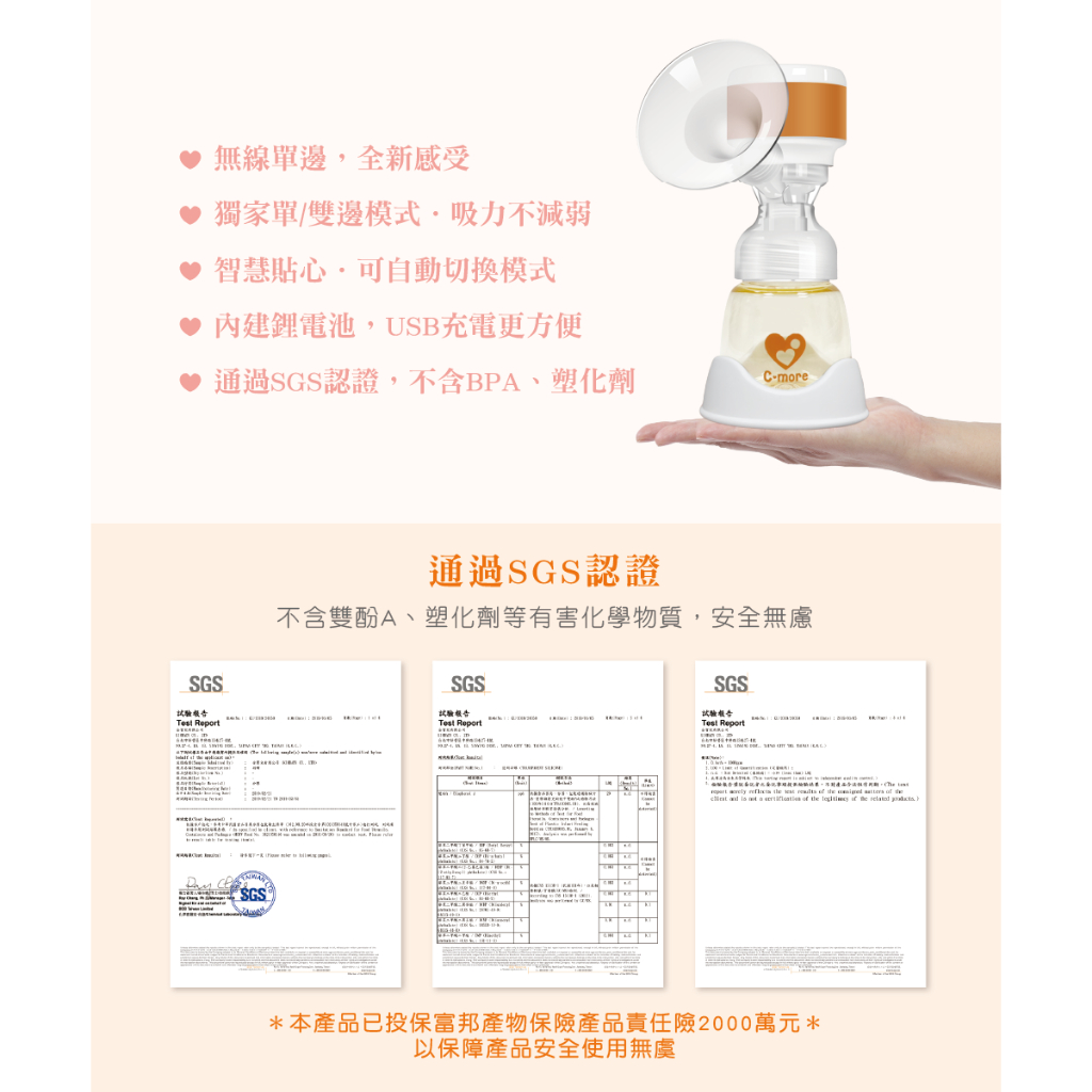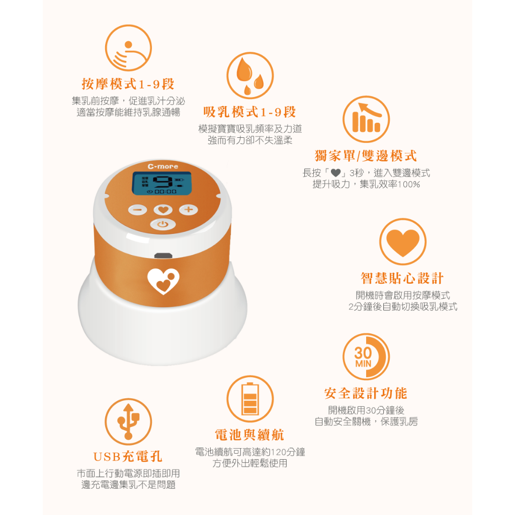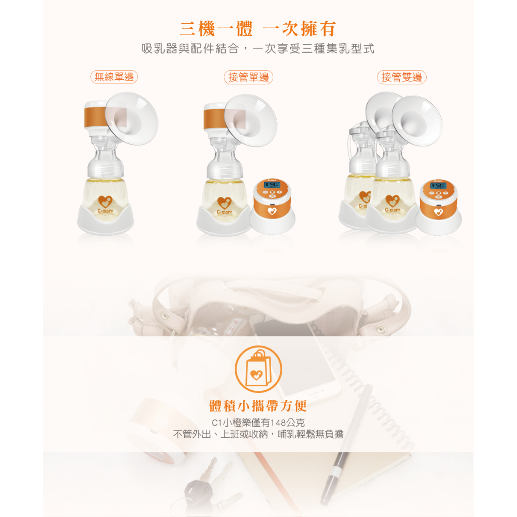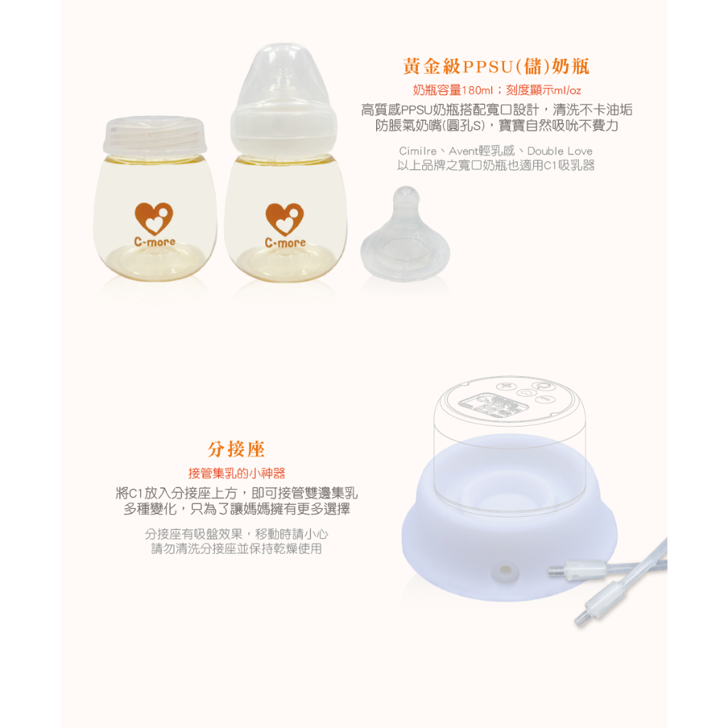 Cmore C1三合一雙邊電動吸乳器(小橙樂)+PPSU寬口奶瓶x2《新手必備組》