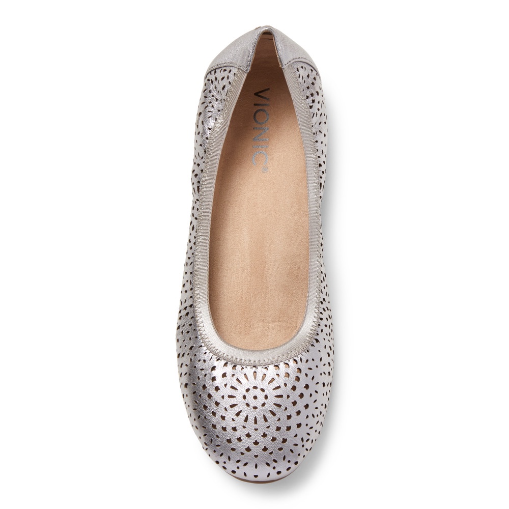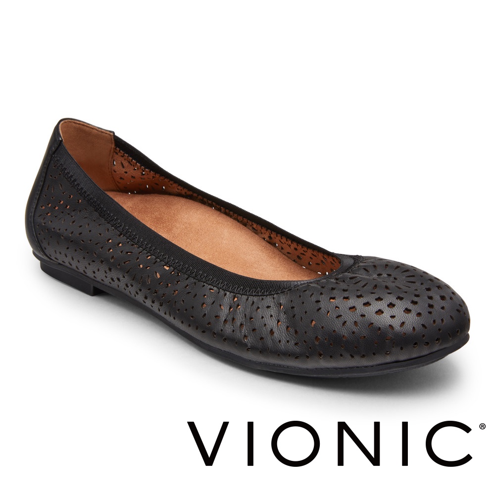 【VIONIC 法歐尼】Robyn蘿冰 羊皮雕花鏤空平底舒適淑女鞋(銀/黑 共兩色)