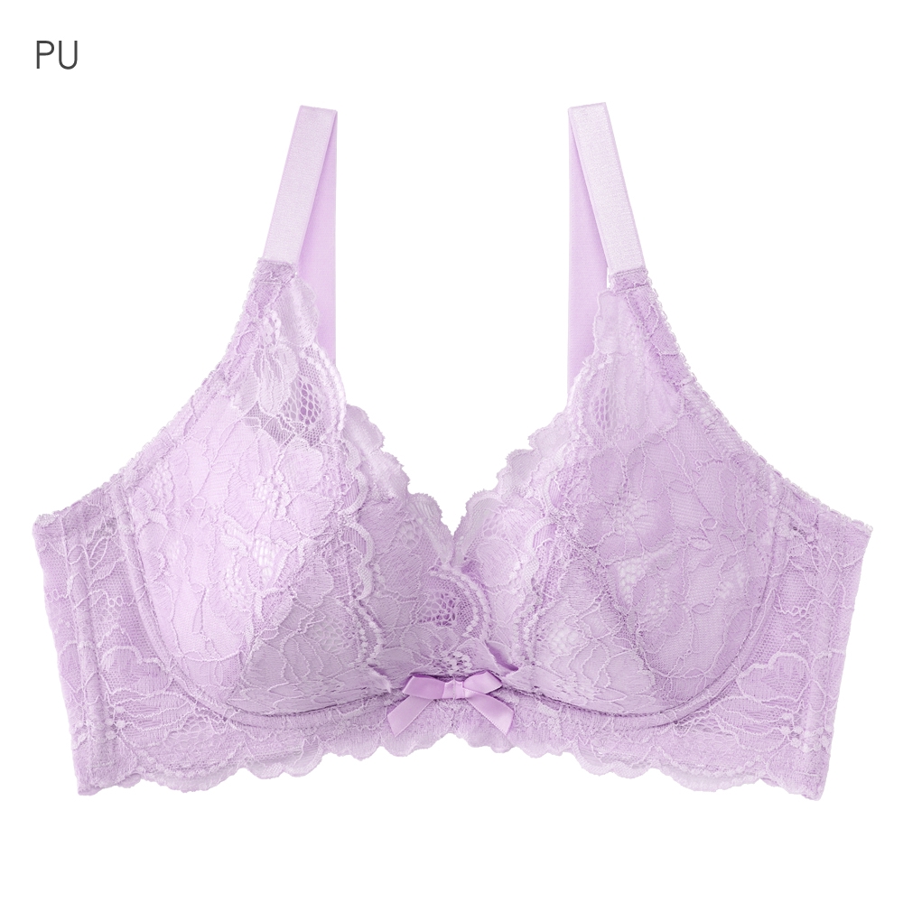 大尺寸內衣副乳舒適胸罩 蕾絲交叉包覆高脇邊大尺寸單品內衣-紫色-603713g-PU