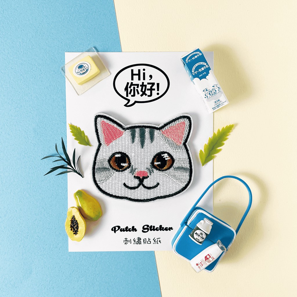 Hi你好|小白貓原創設計刺繡貼紙貓咪貼紙筆電貼紙安全帽貼紙刺繡布貼布貼