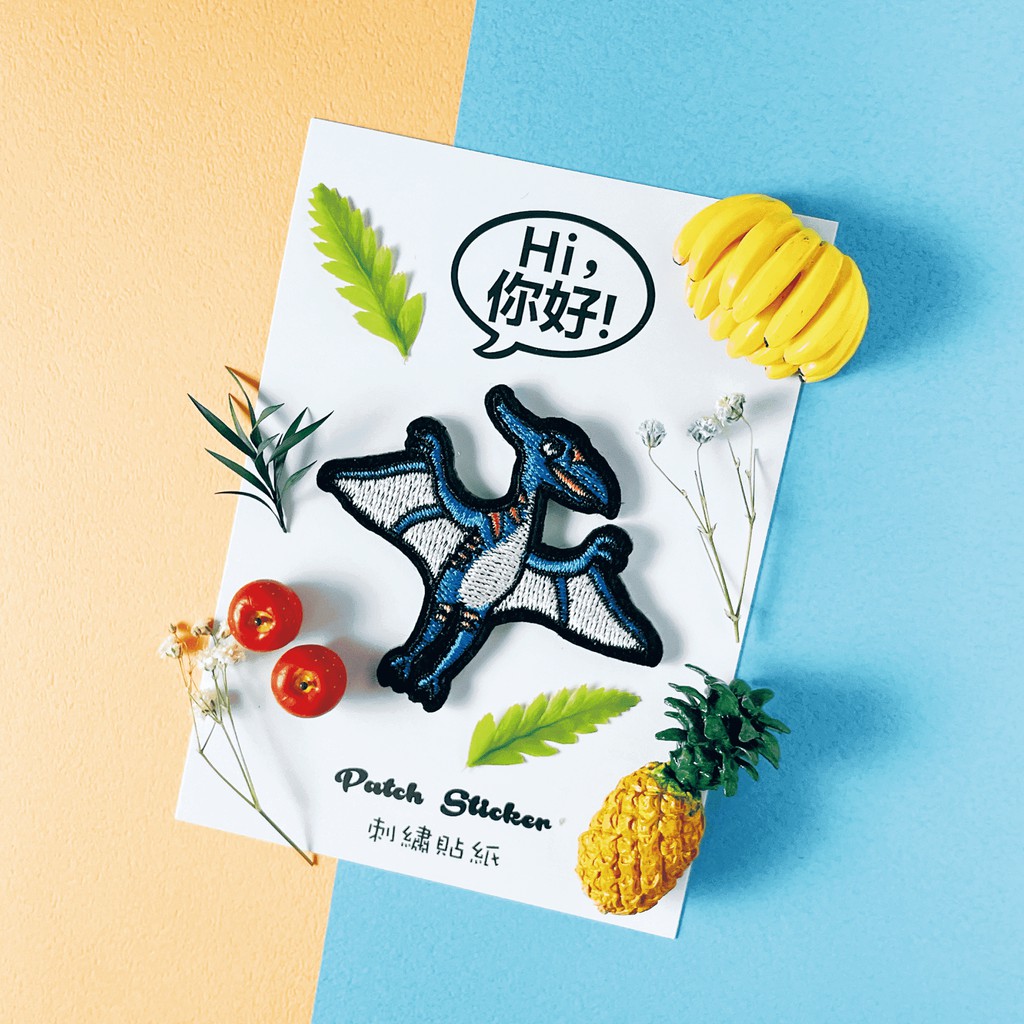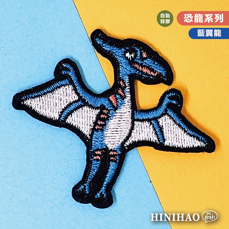 Hi你好|藍翼龍原創設計刺繡貼紙恐龍貼紙手機殼貼紙安全帽貼紙刺繡布貼布貼