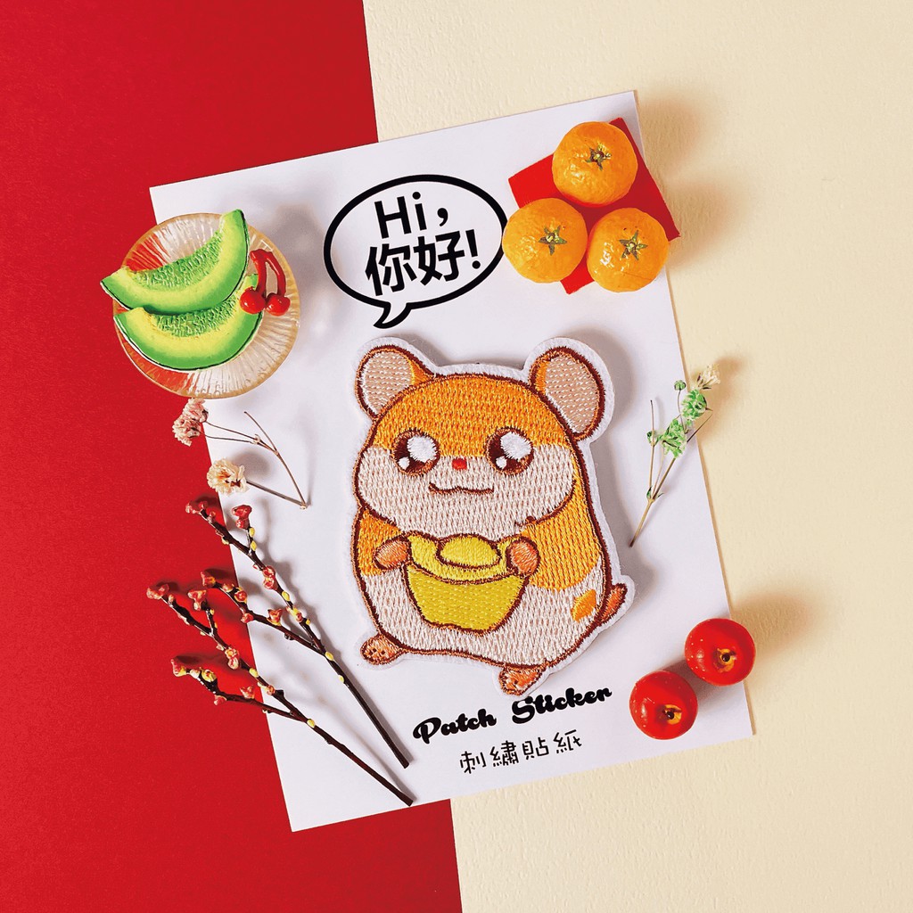 Hi你好|黃金鼠原創設計刺繡貼紙動物貼紙筆電貼紙安全帽貼紙刺繡布貼布貼