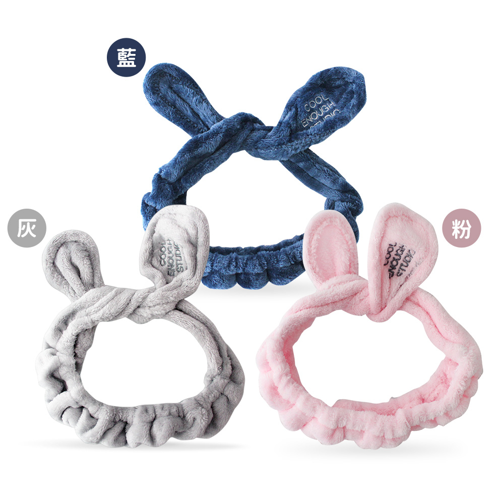 O'Pretty 歐沛媞 韓版可愛兔洗臉髮帶(8X80cm)-粉/灰/藍【美麗購】