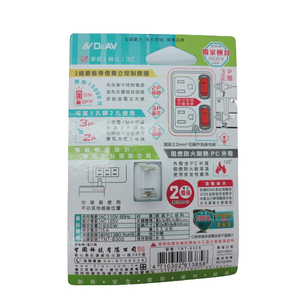 Dr.AV 二開二插 獨立電源