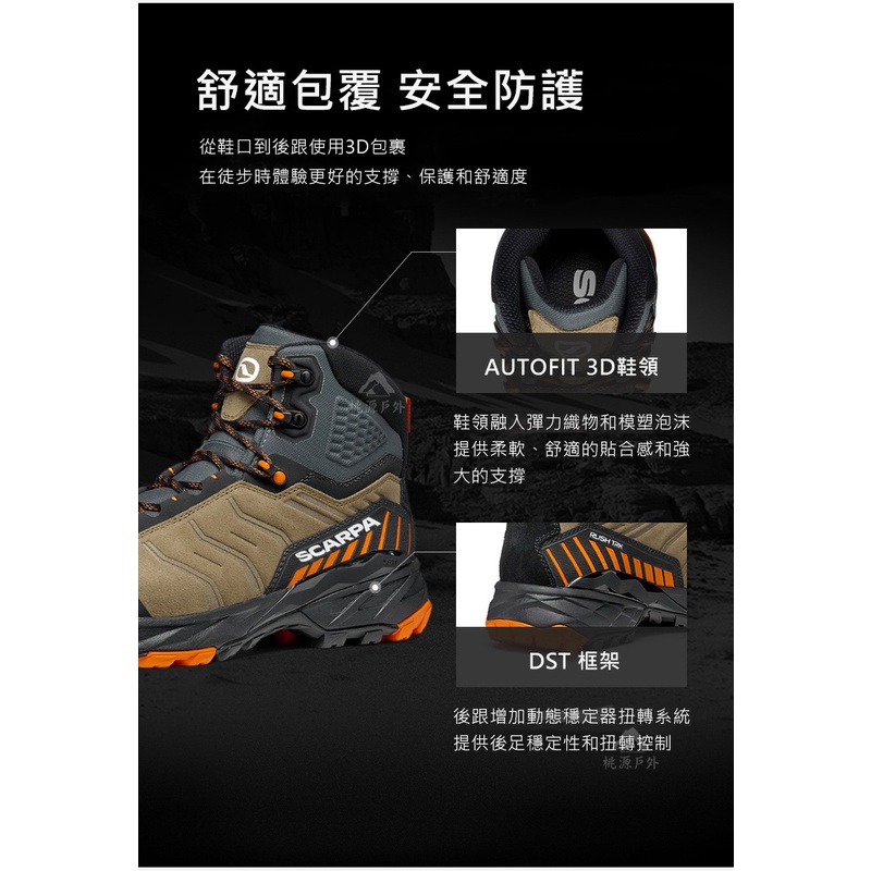 【Scarpa】RUSH TRK 男 GTX多功能健行鞋『沙漠/芒果』63140-200