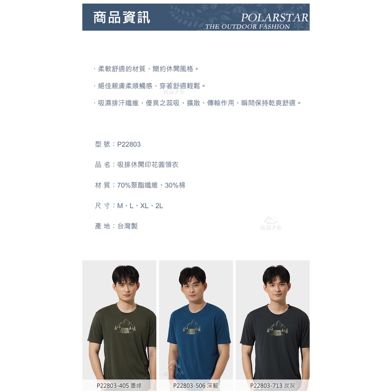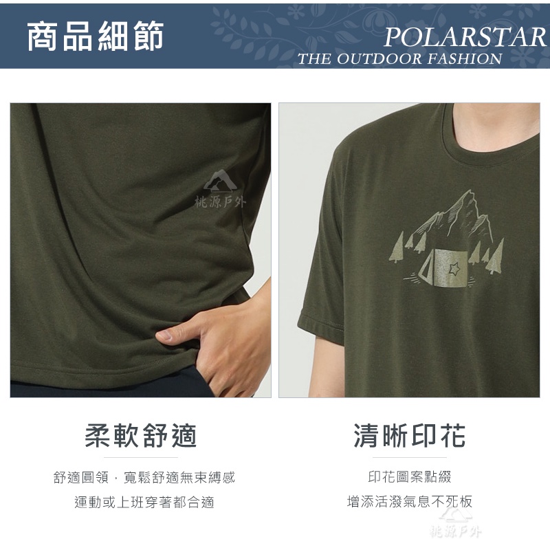 PolarStar 男 吸排休閒印花圓領衣『墨綠』P22803