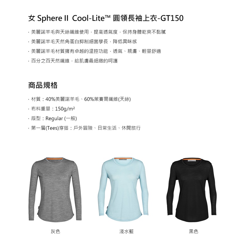 【icebreaker】Sphere II Cool-Lite 女 圓領長袖上衣 GT150『黑』0A56EJ