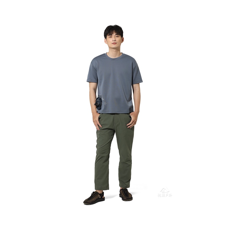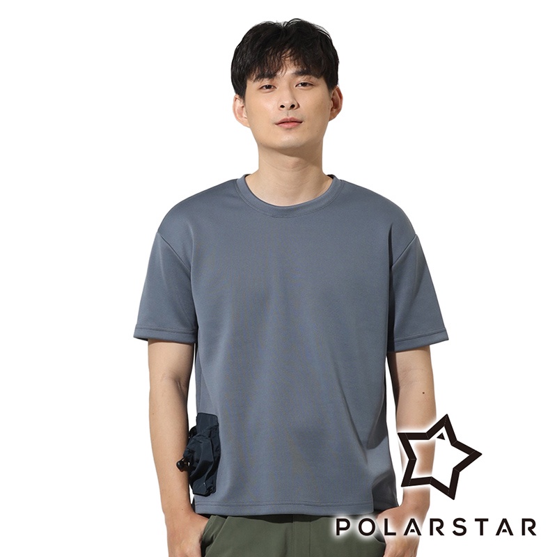 PolarStar 男 吸排休閒圓領貼袋衣『灰藍』P22805