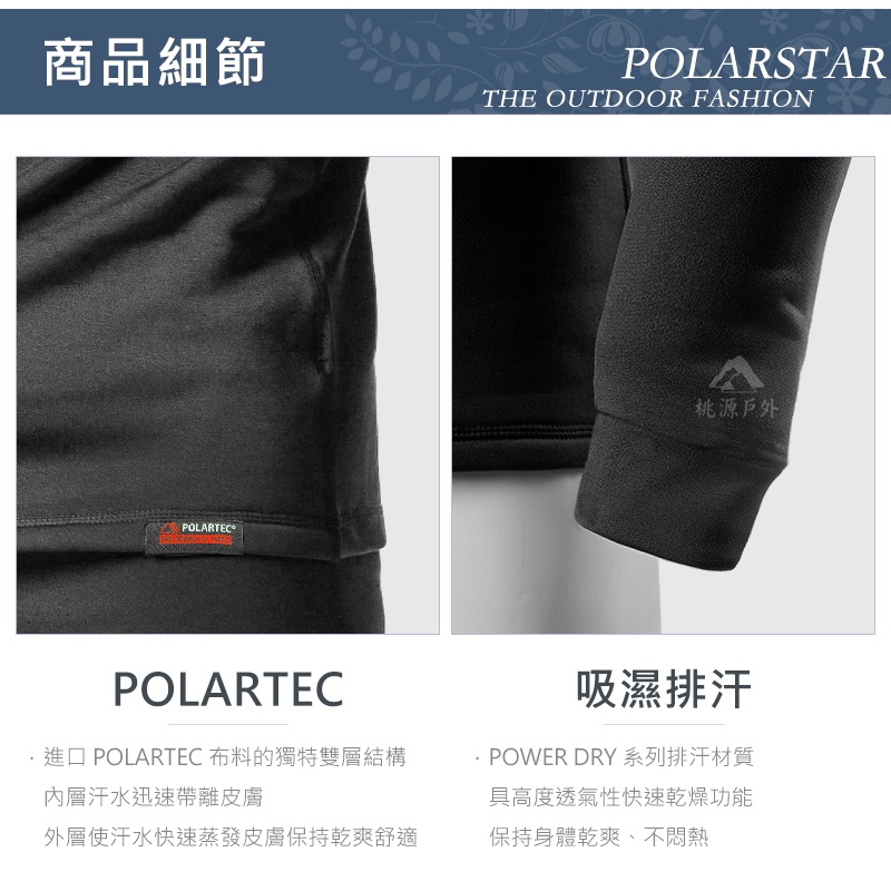 PolarStar 中性 彈性保暖排汗V領衫『黑』P21231