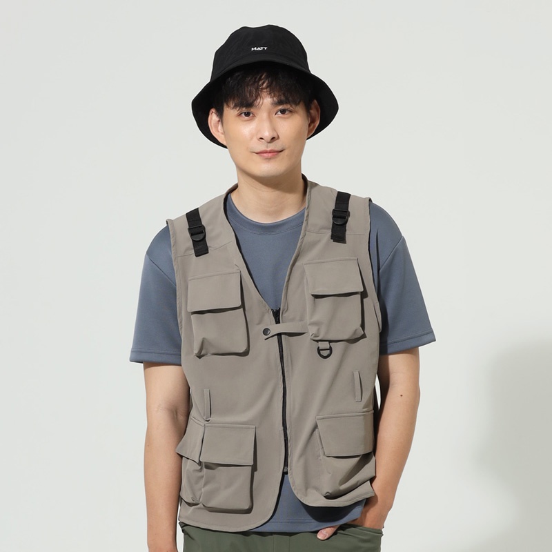 【PolarStar】中性多口袋工裝背心『淺卡其』P22811