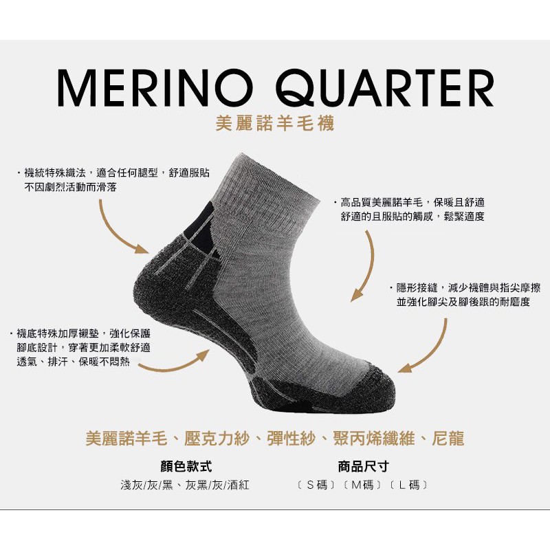 【HORIZON】MERINO QUARTER 美麗諾羊毛襪 HO-2224『淺灰/灰/黑』
