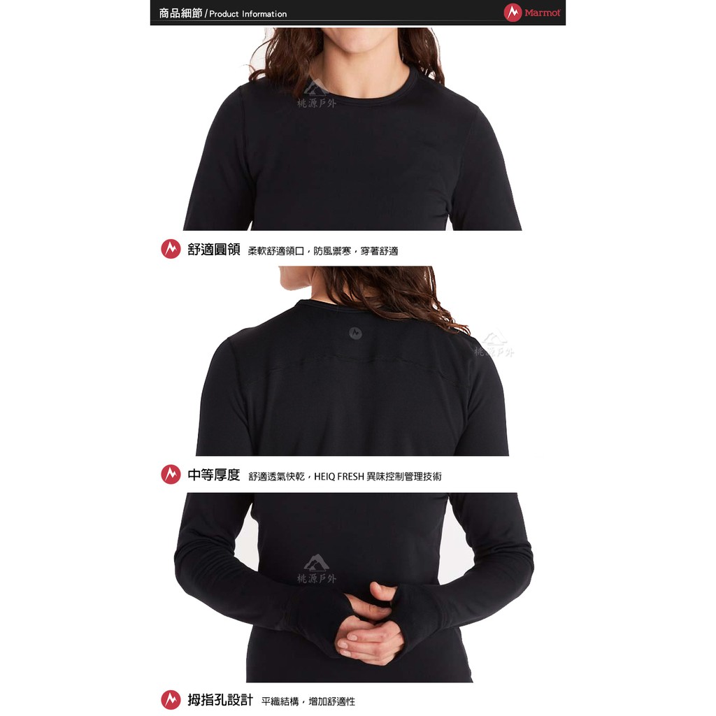 【Marmot】女 Polartec 圓領防曬抑味彈性長袖排汗衣『靛青藍』82170