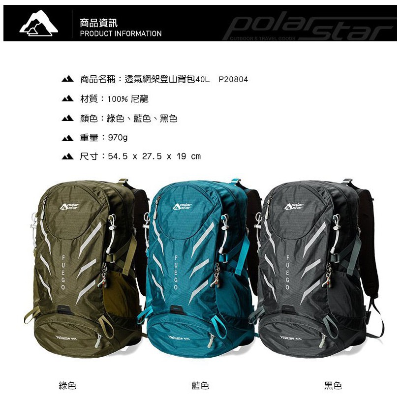 【PolarStar】透氣網架登山背包 40L『綠色』P20804