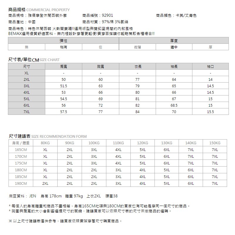 【胖胖星球】中大尺碼‧雅痞摩登休閒西裝外套 2XL~7XL‧加大【92901】