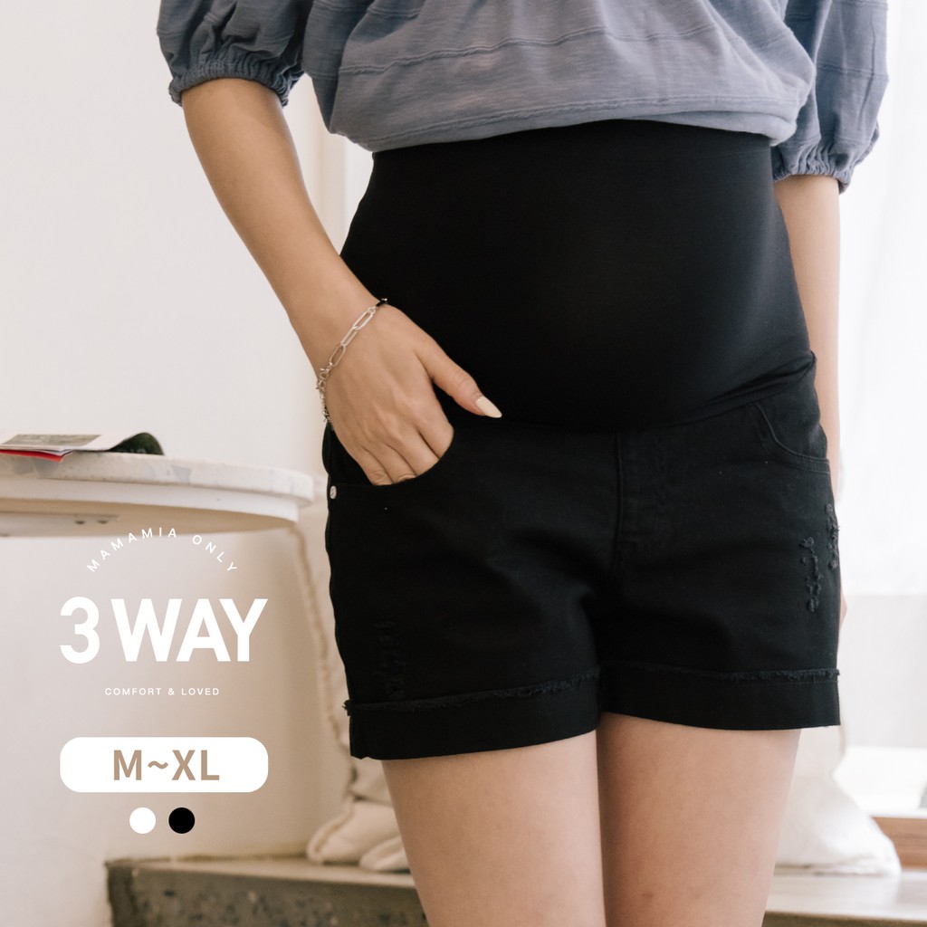 Mamamia孕婦裝 3WAY百搭顯瘦腳反摺孕婦褲 M~XL 孕婦 孕婦裝 孕婦短褲 托腹褲 牛仔褲 [B6362]