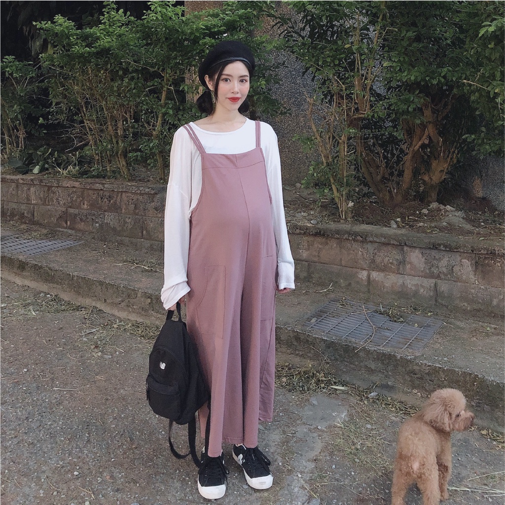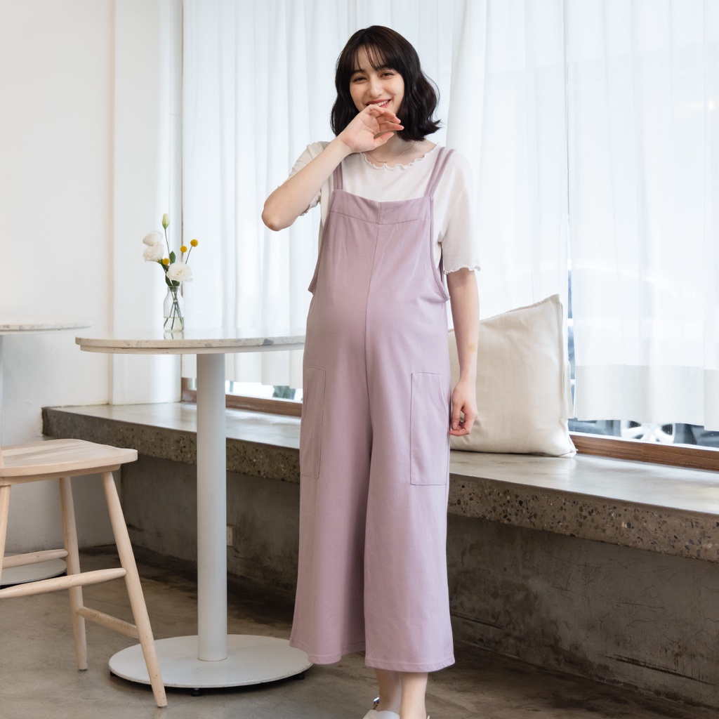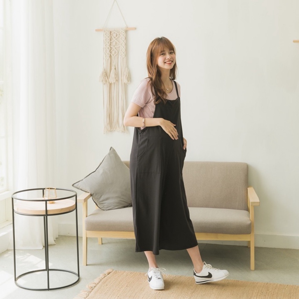 Mamamia孕婦裝 素面雙肩帶彈力孕婦褲 寬褲 連身褲 孕婦吊帶褲 正韓製 孕婦褲 孕婦裝 [B6277]