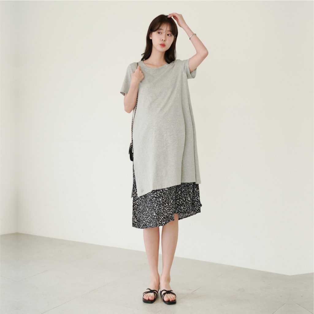 Mamamia孕婦裝 浪漫氣質感假兩件哺乳洋裝 正韓製 孕婦裝 孕婦裙 孕婦洋裝 喂奶衣 短袖 [A1592]
