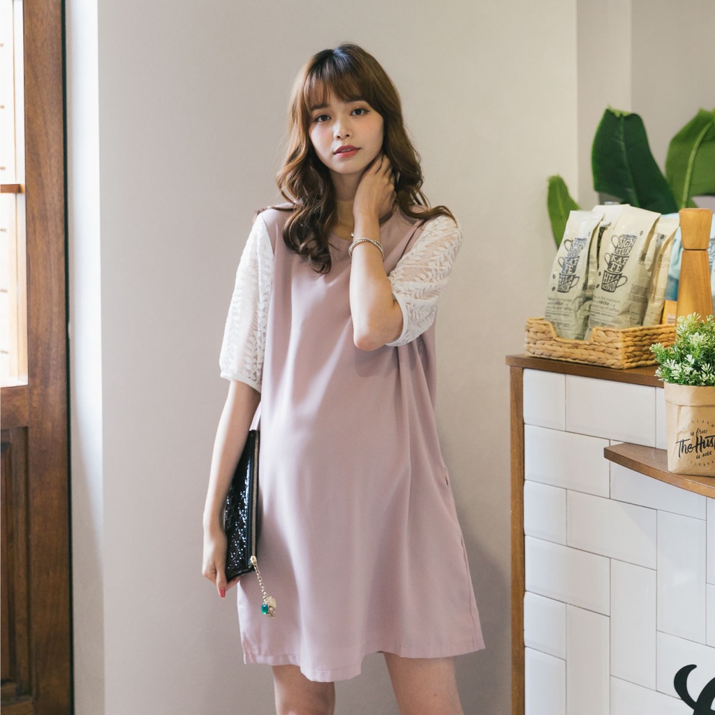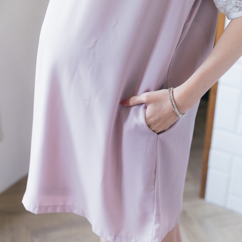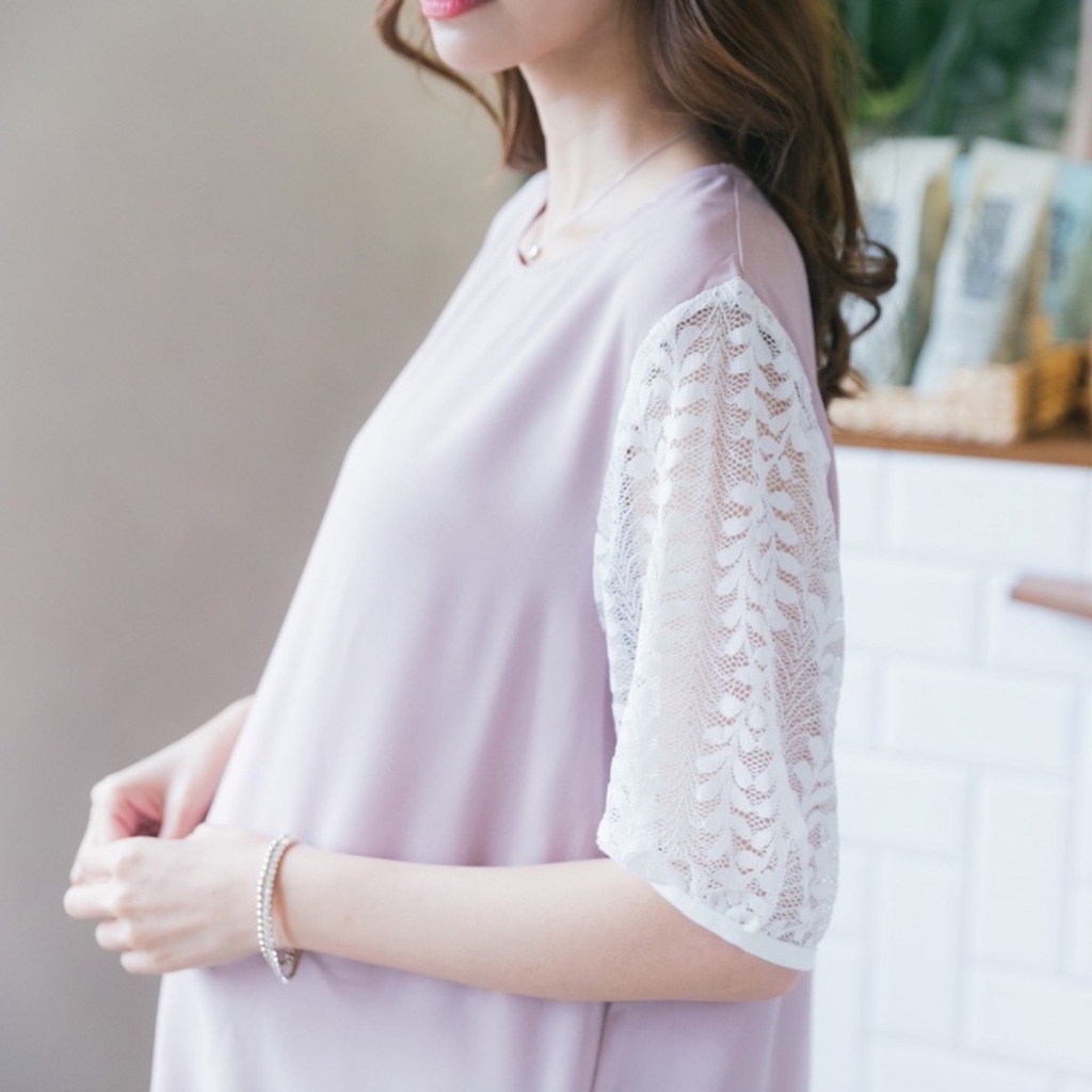 Mamamia孕婦裝 素面五分袖蕾絲雪紡孕婦裝 洋裝 短袖 孕婦裙 孕婦連身裙 連身洋裝 孕婦洋裝 [D7041]