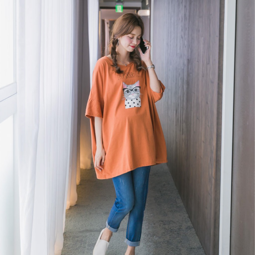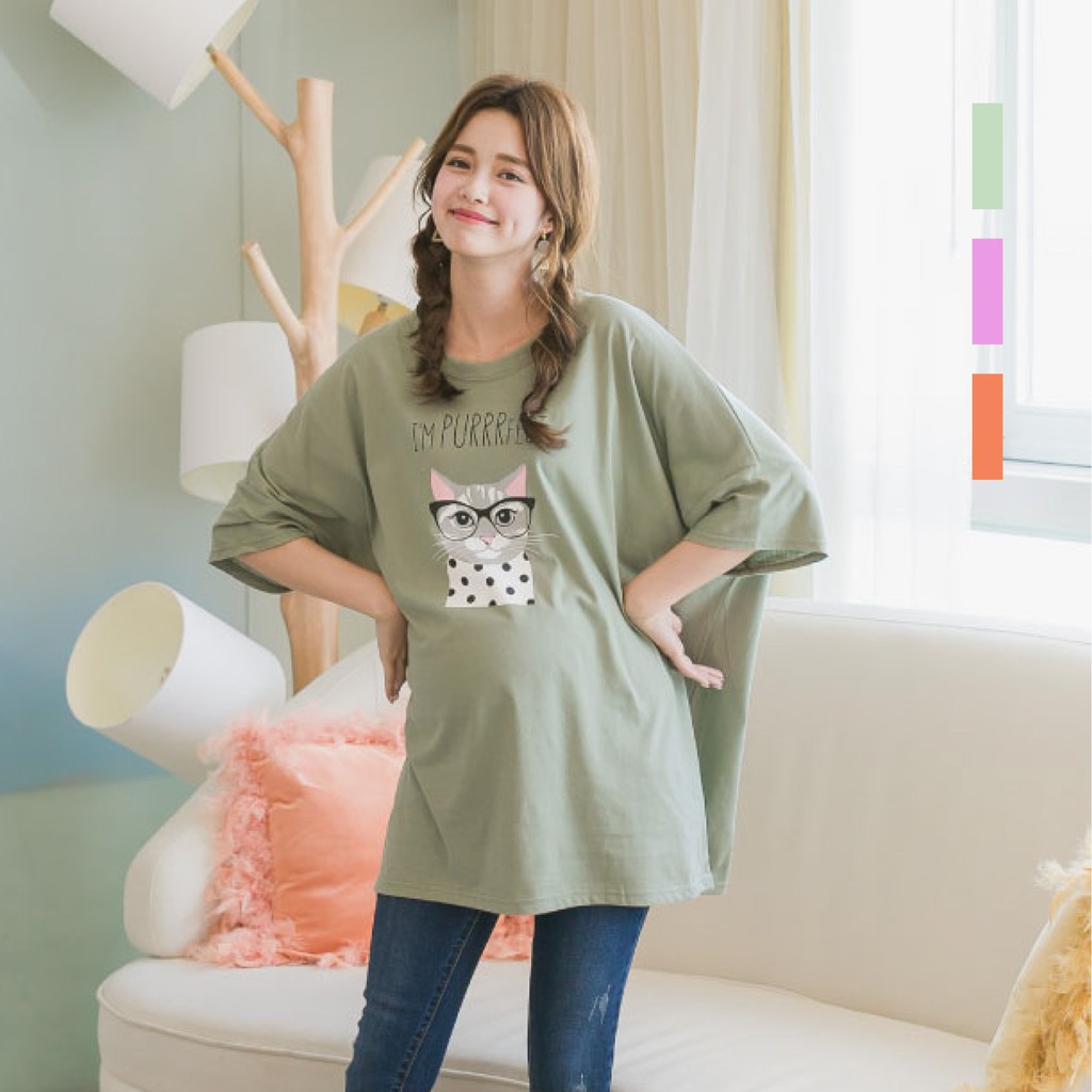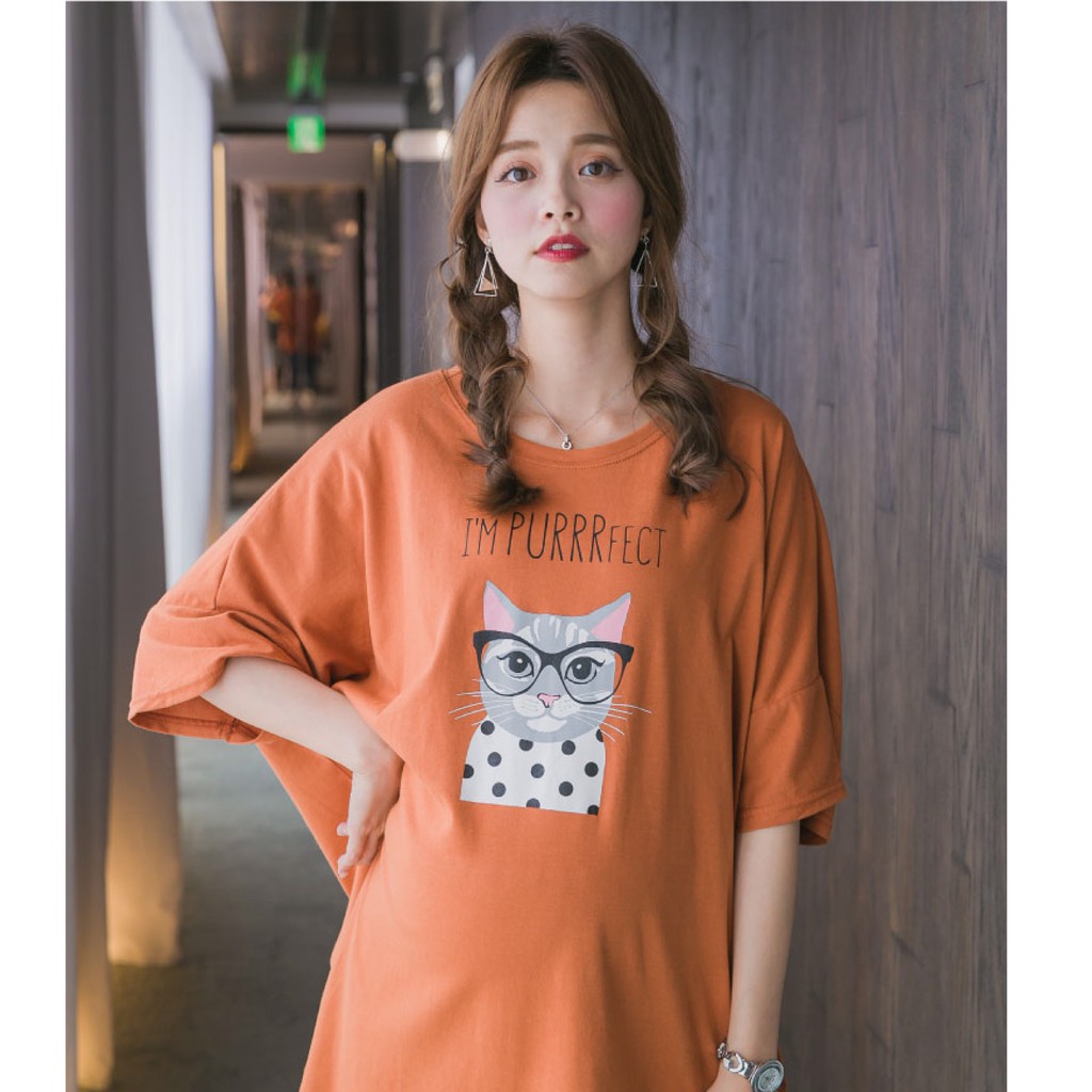 Mamamia孕婦裝 眼鏡貓五分袖寬版孕婦裝 正韓製 短袖 孕婦上衣 長版上衣 [C3087]