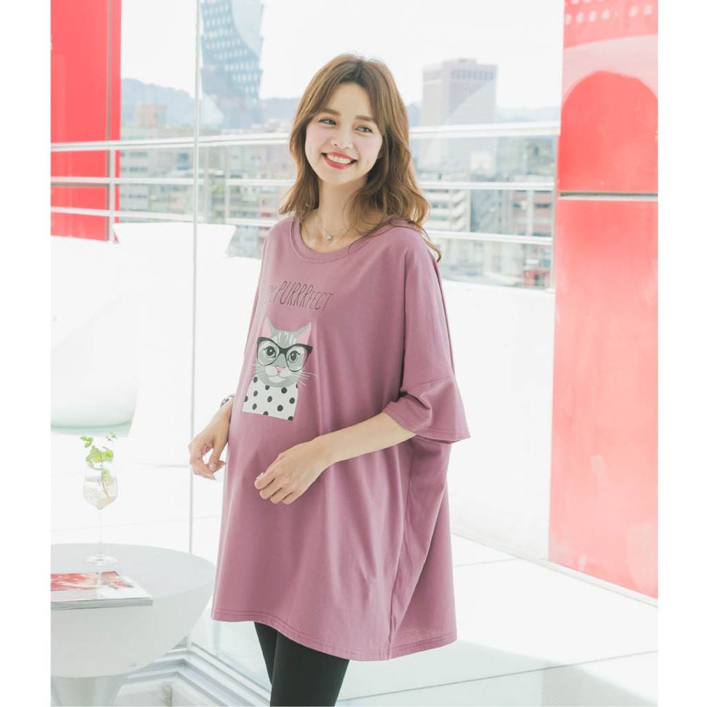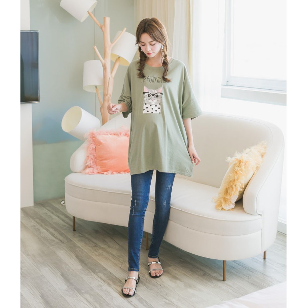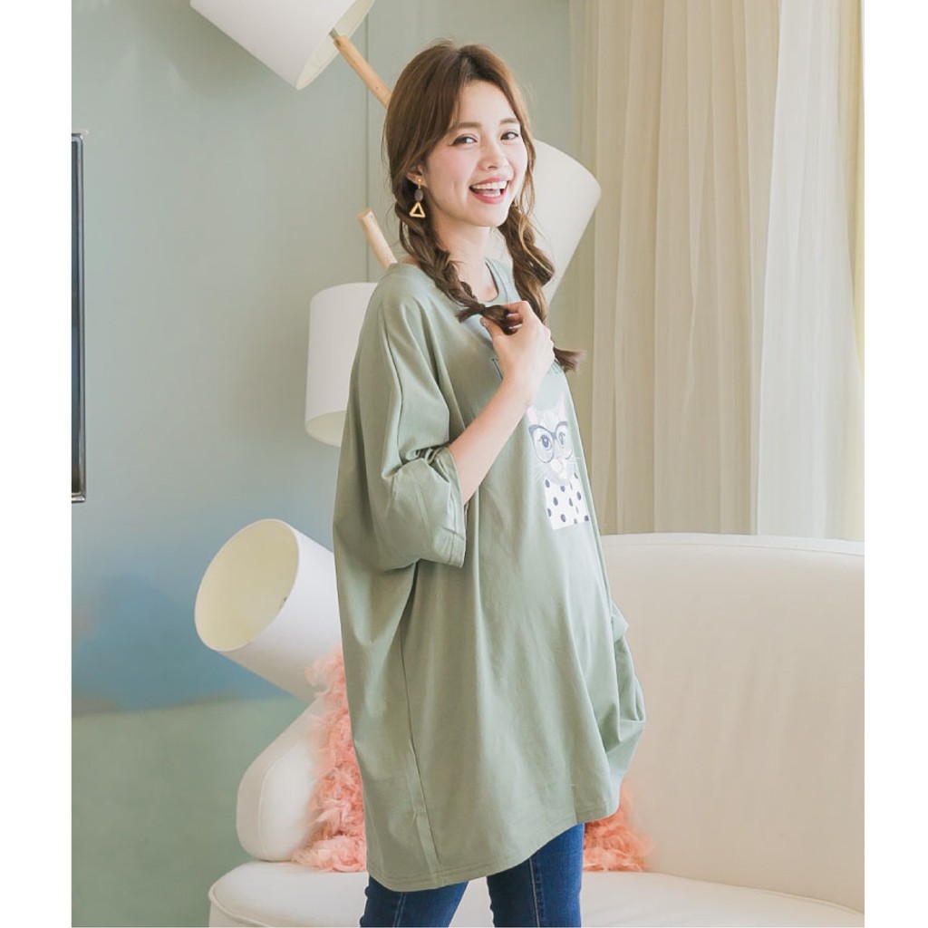 Mamamia孕婦裝 眼鏡貓五分袖寬版孕婦裝 正韓製 短袖 孕婦上衣 長版上衣 [C3087]