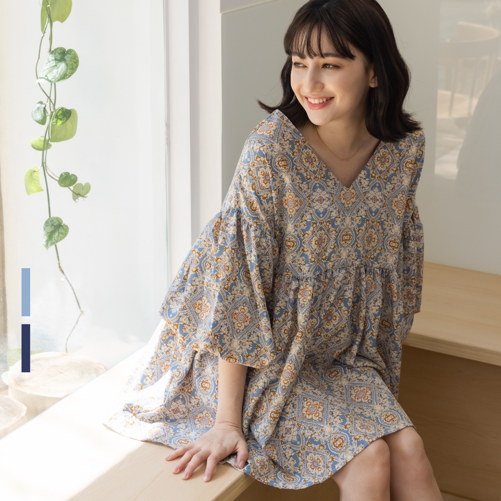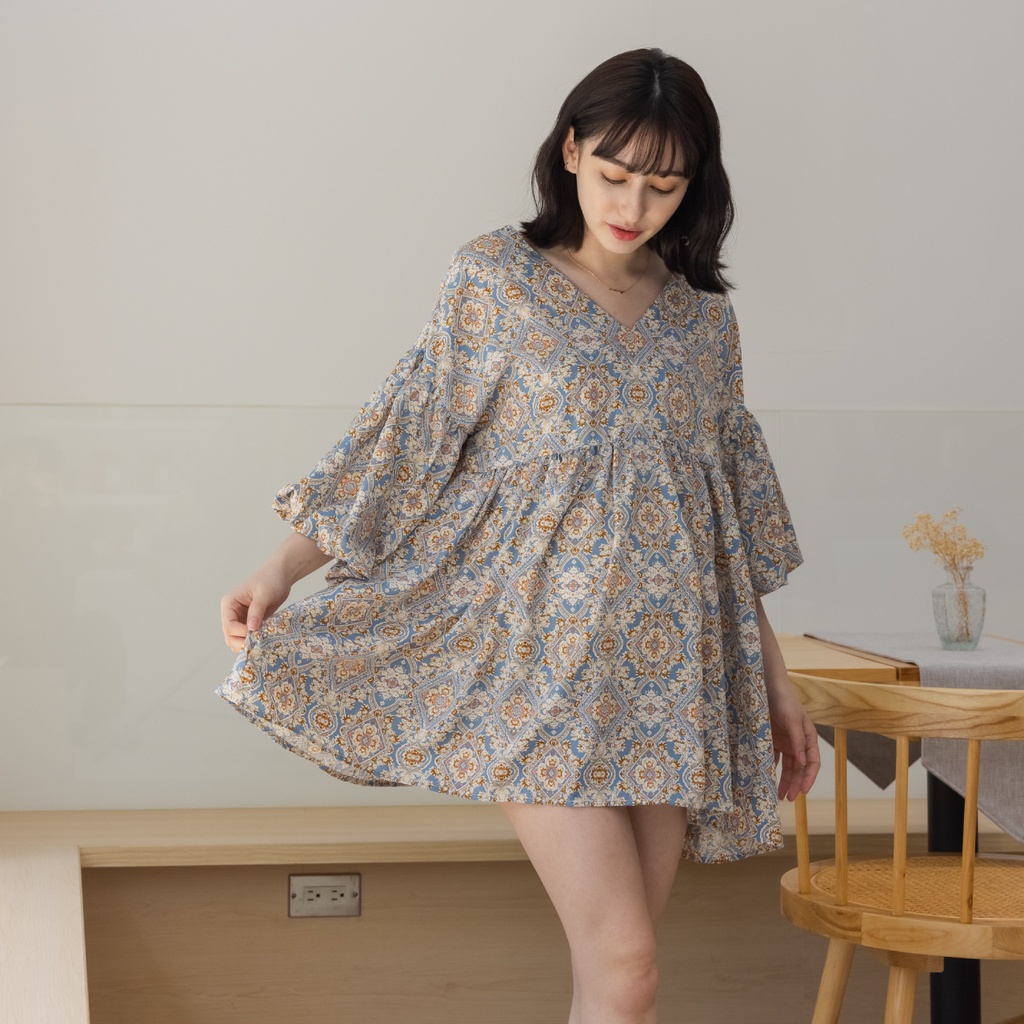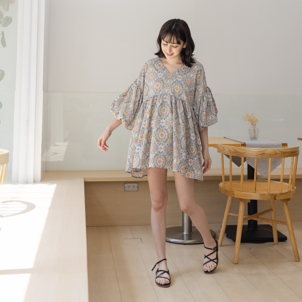 Mamamia孕婦裝 小法式澎澎袖碎花孕婦洋裝 正韓製 短袖 洋裝 雪紡 孕婦上衣 孕婦裝 [D7265]