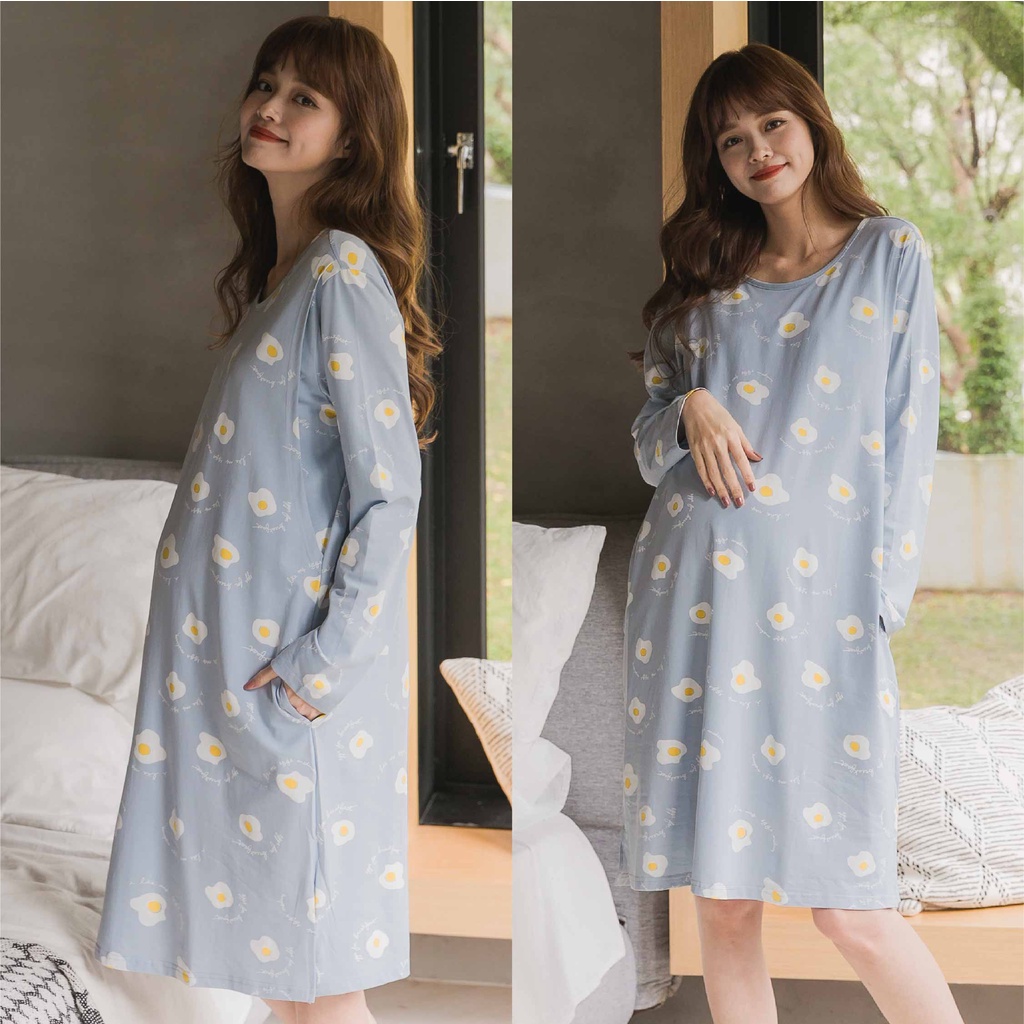 Mamamia孕婦裝 荷包蛋哺乳睡衣 M~L 連衣裙 哺乳衣 月子服 孕婦裝 哺乳睡衣 孕婦洋裝 居家服 [A1628]