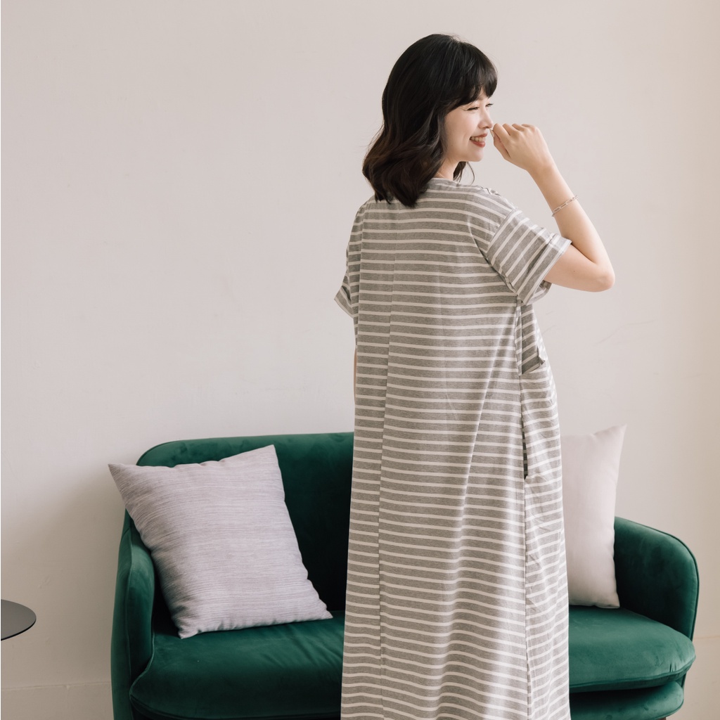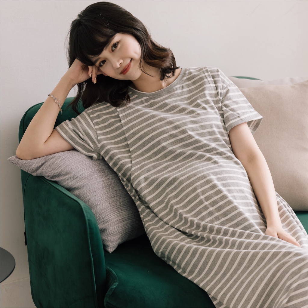 Mamamia孕婦裝 舒適條紋A擺哺乳孕婦裝 哺乳洋裝 正韓製 哺乳衣 孕婦裝 孕婦裙 孕婦洋裝 短袖 [A1721]