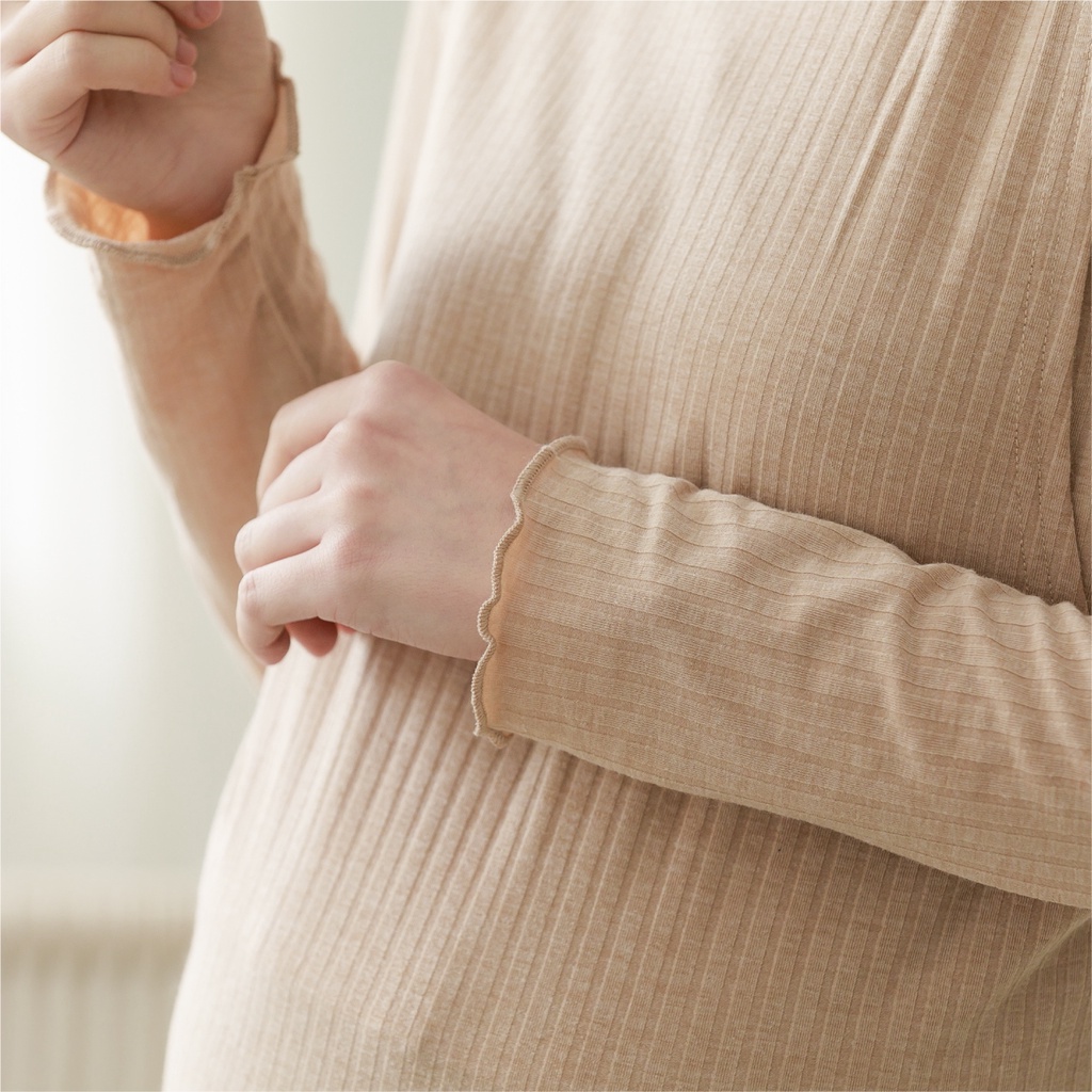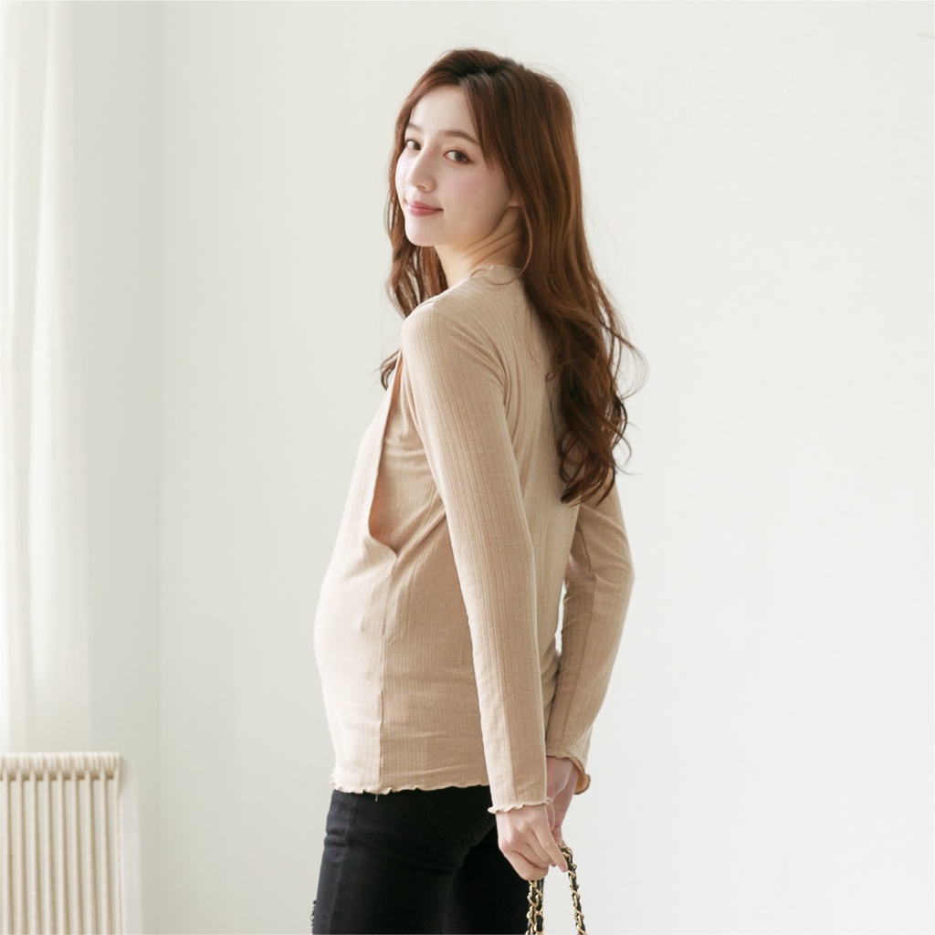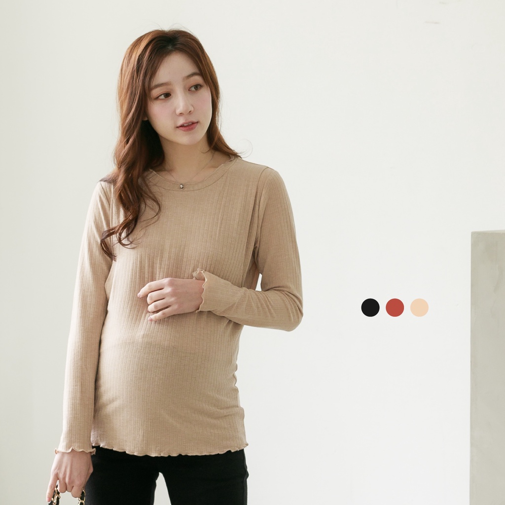 Mamamia孕婦裝 坑條紋路捲邊哺乳衣 孕婦裝 孕婦上衣 哺乳上衣 長袖 正韓製 M~L [A1675]