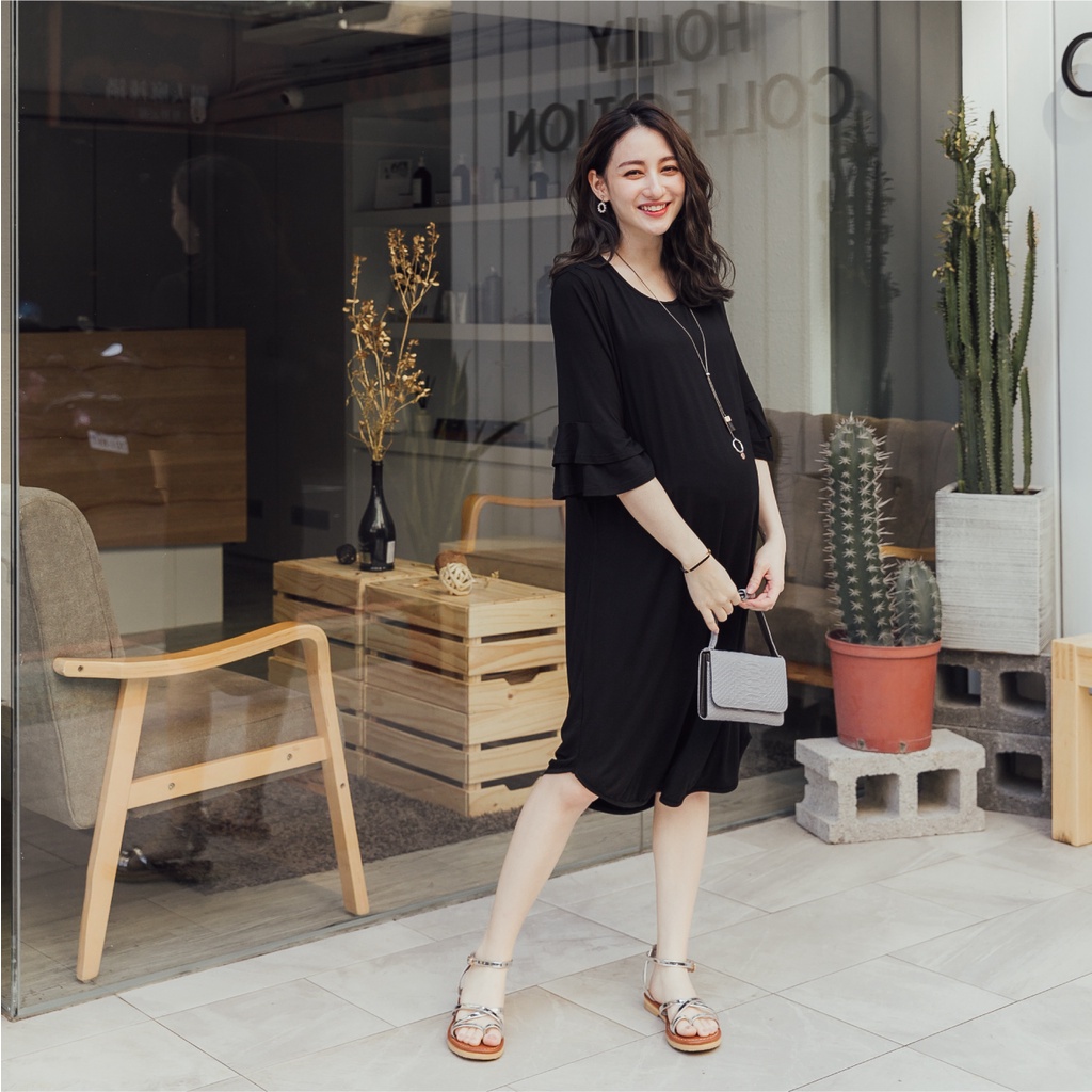 Mamamia孕婦裝 素面雙層荷葉袖哺乳洋裝 正韓製 短袖 哺乳衣 孕婦裝 孕婦裙 連身裙 孕婦洋裝[A1198]